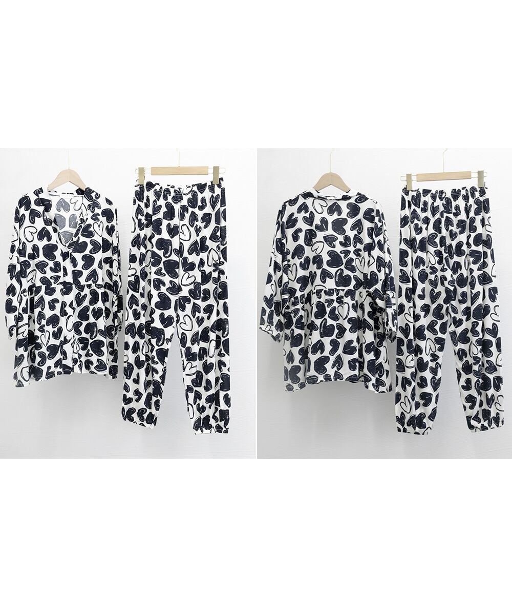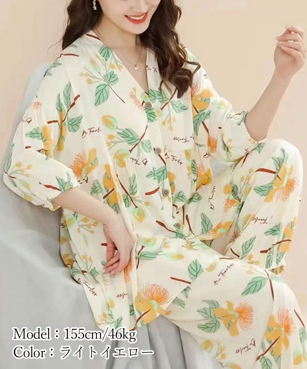 【日本倉庫からの発送】 総柄パジャマ レディースルームウェア春夏 #[86MXMM-001_19000]【送料込み】【250712】