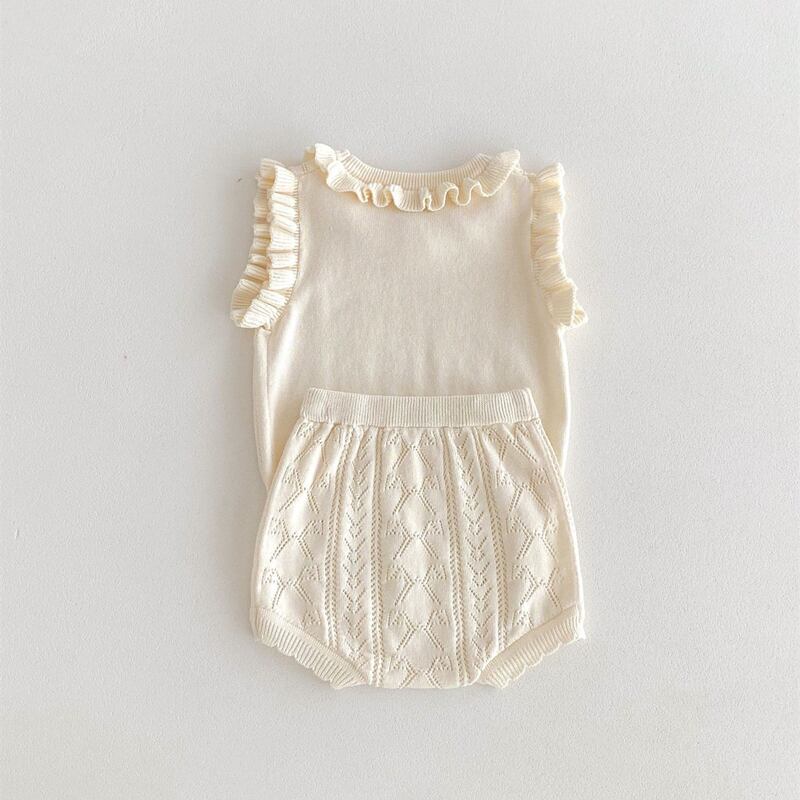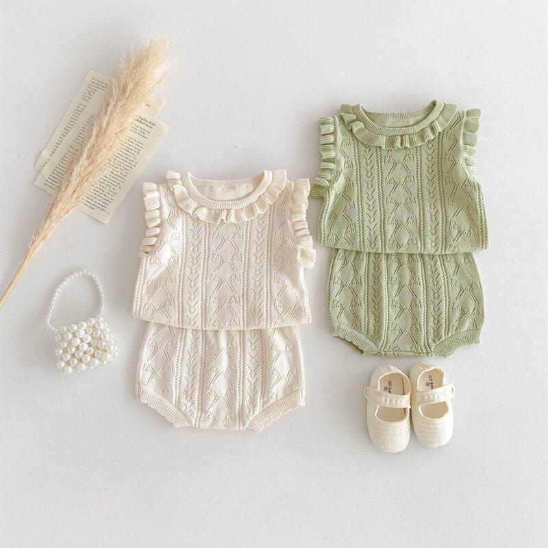 【海外からの取り寄せ】2024夏新作 ベビー服 ニット フリル セットアップ ノースリーブ Tシャツ ハーフパンツ 女の子 #[ckd1093650_25000]【送料込み】【250524】
