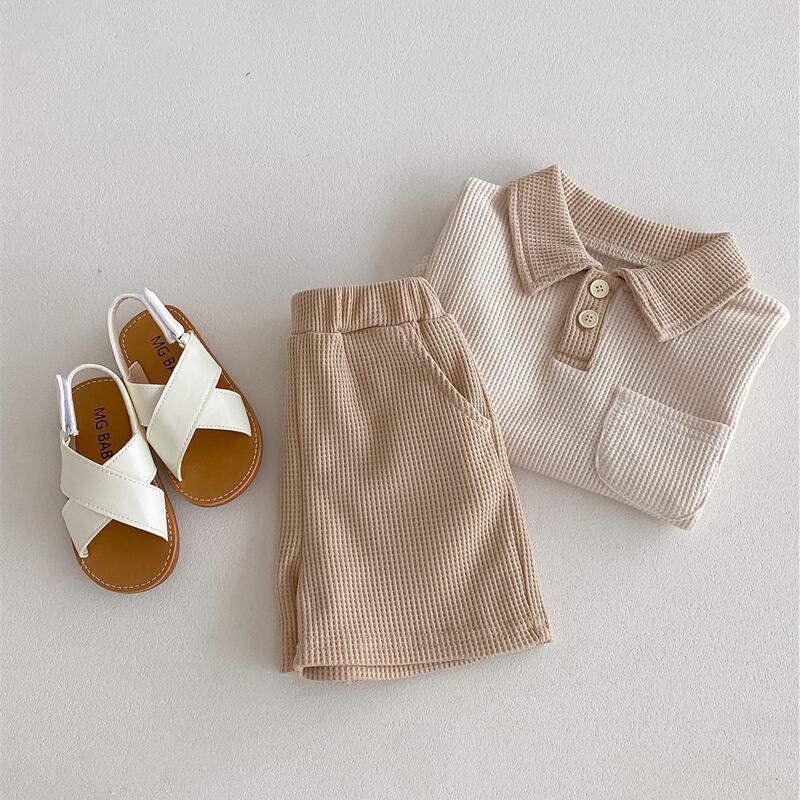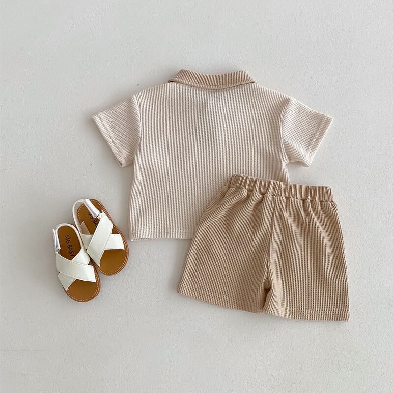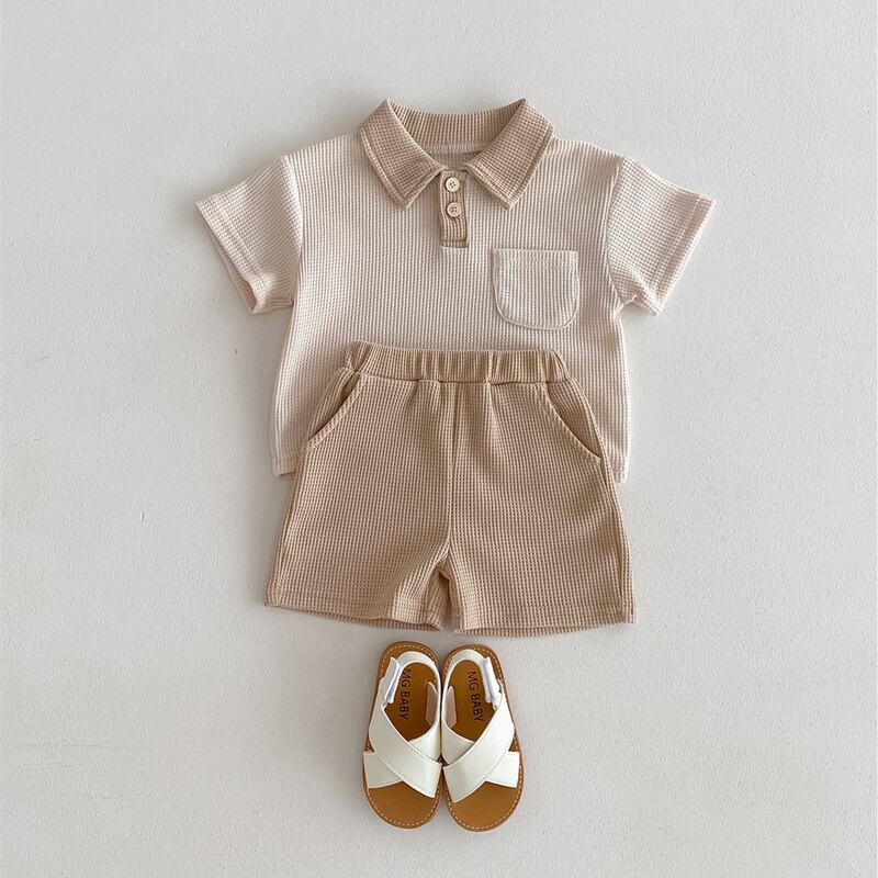 【海外からの取り寄せ】2024夏新作 ベビー服 ワッフル カジュアル 2点セット 半袖 Tシャツ ハーフパンツ 子供服 可愛い #[ckd1093649_16700]【送料込み】【250517】
