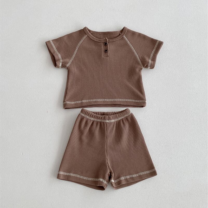 【海外からの取り寄せ】2024夏新作 ベビー服 ワッフル カジュアル 無地 2点セット Tシャツ ハーフパンツ 子供服 可愛い #[ckd1093648_15700]【送料込み】【250513】
