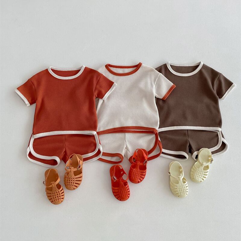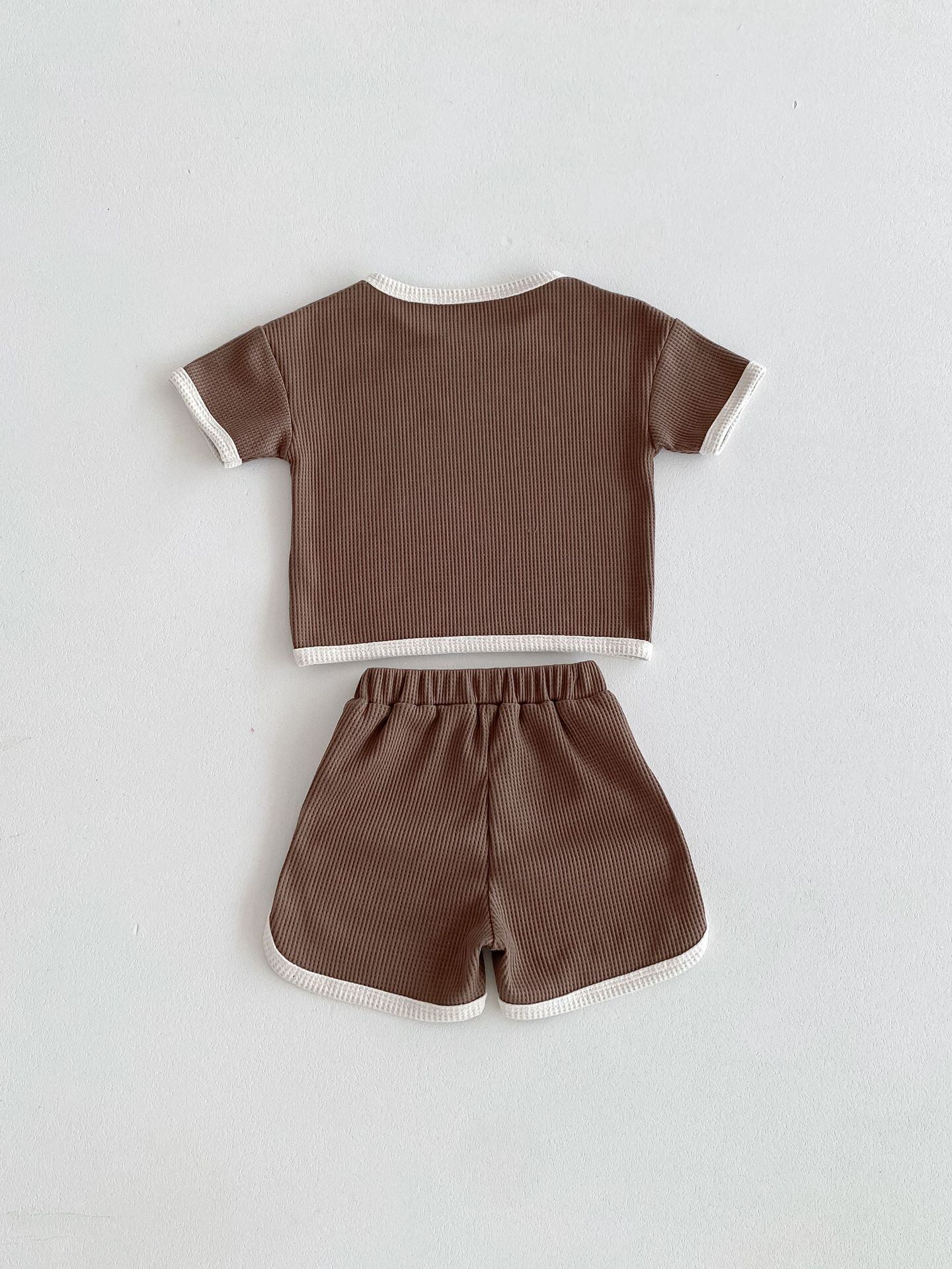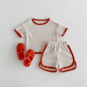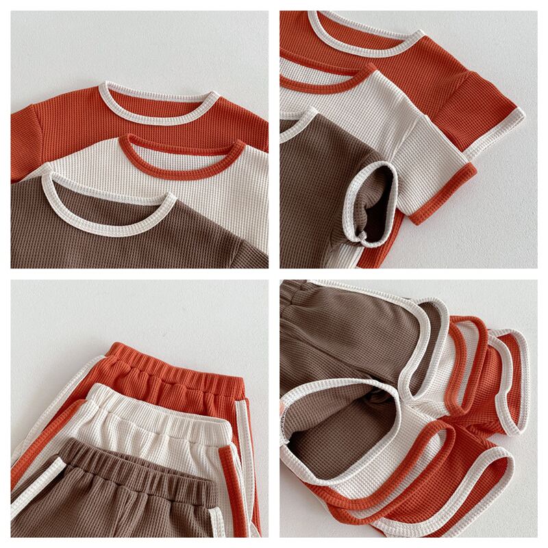 【海外からの取り寄せ】2024夏新作 ベビー服 ワッフル カジュアル 無地 2点セット Tシャツ ハーフパンツ 子供服 可愛い #[ckd1093647_14800]【送料込み】【250513】