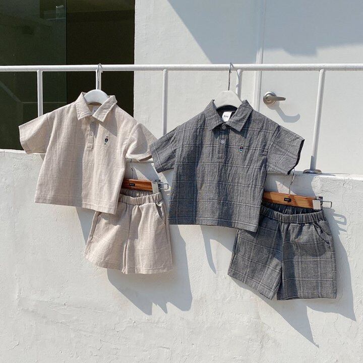 【海外からの取り寄せ】ins 夏新作 子供服 セットアップ 半袖シャツ 短パン 男女兼用 格子 2点セット カジュアル 可愛い #[ckd1093644_18500]【送料込み】【250525】