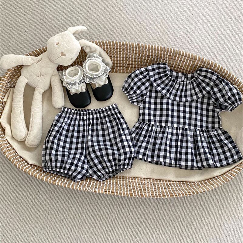 【海外からの取り寄せ】2024夏新作 ベビー服 女の子 チェック柄 セットアップ 半袖 ブラウス ショートパンツ 格子 子供服 #[ckd1093677_15900]【送料込み】【250513】