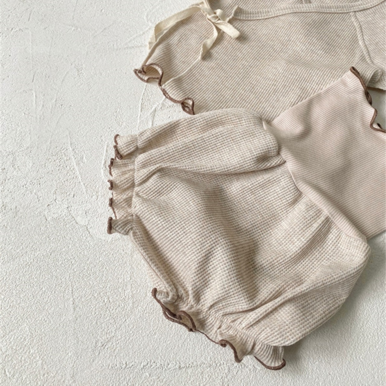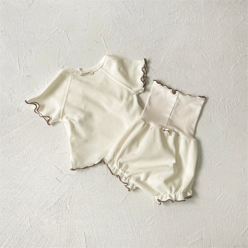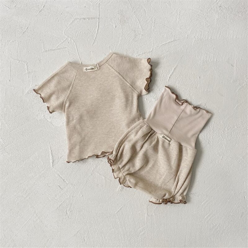 【海外からの取り寄せ】2024夏新作 ベビー服 ワッフル フリル セットアップ 上着 ハイウエストブルマー 子供服 可愛い #[ckd1093673_25000]【送料込み】【250517】