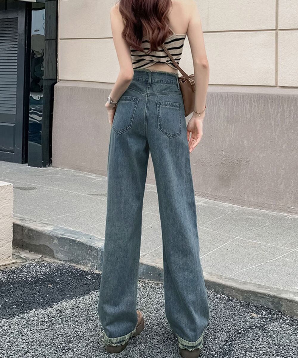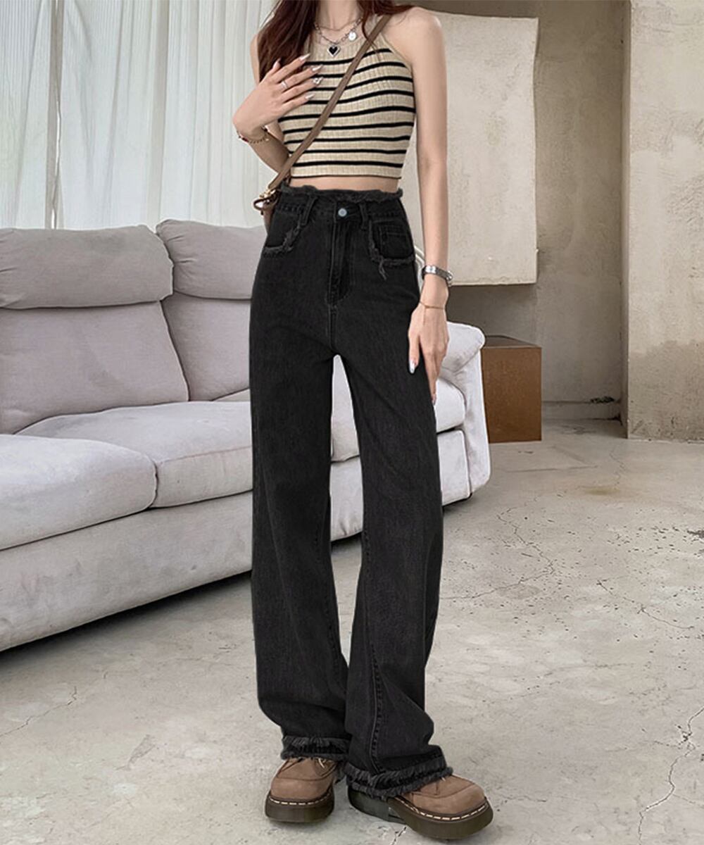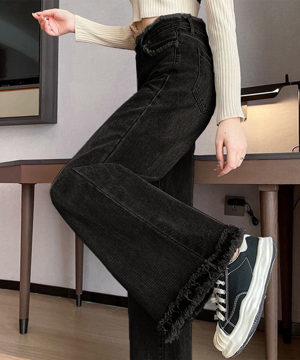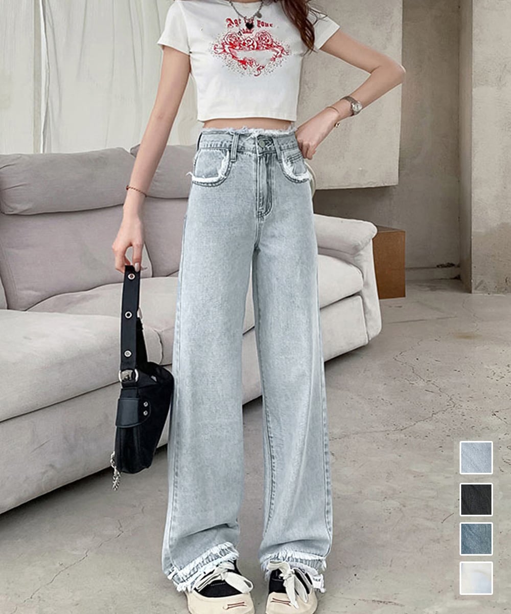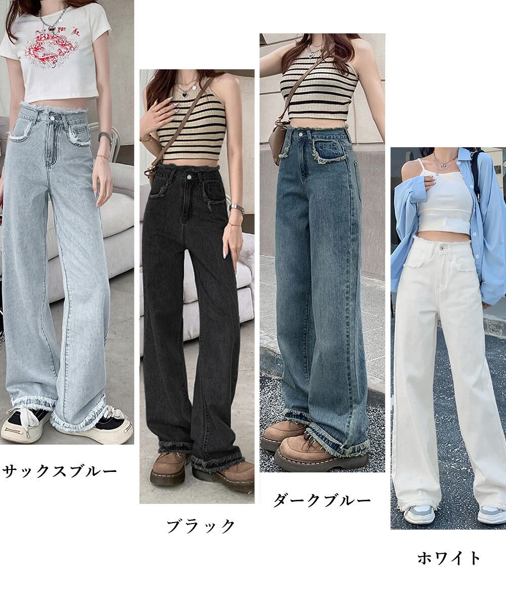 【日本倉庫からの発送】 フリンジ デニムパンツ ハイウエスト美脚 #[6YISHANG-001_23800]【送料込み】【260125】