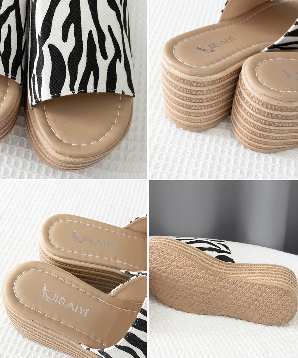レディース ミュールサンダル 履きやすい ウェッジヒールサンダル 痛くないビーチサンダル 韓国風 アニマル柄 夏靴 人気