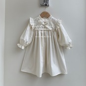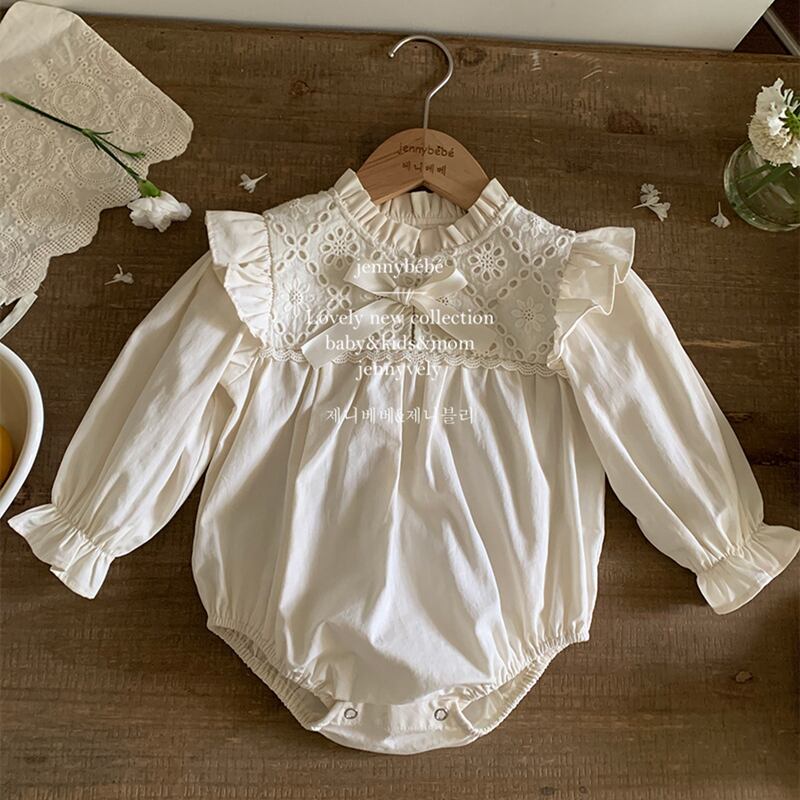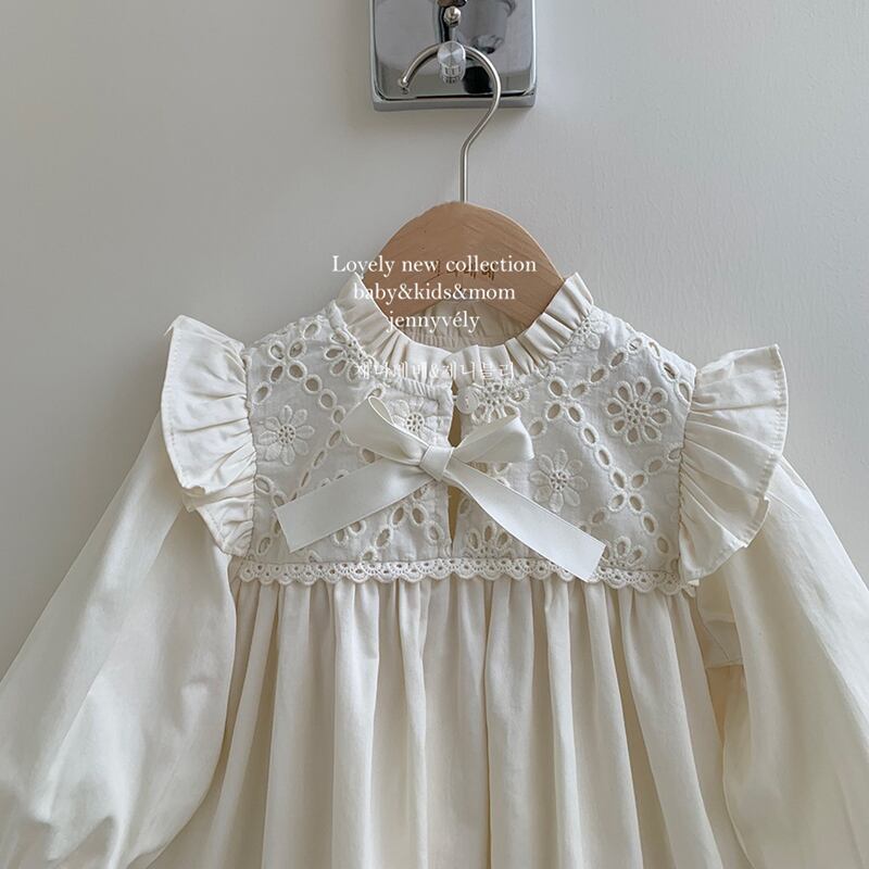 ins 韓国子供服 女の子 立ち襟 レース ベビー服 おしゃれ 出産祝い 普段着 森ガール 春 秋