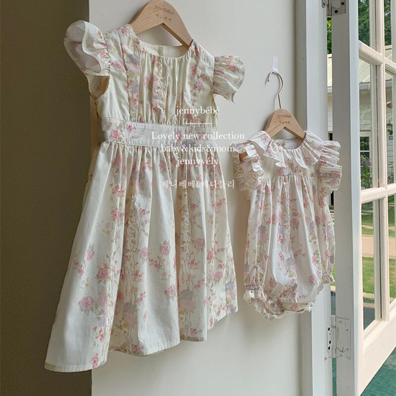 ins 夏新作 子供服 姉妹 お揃い 選べる2タイプ 花柄 ロンパース ワンピース フラッタースリーブ #[ckd1093703_29800]【海外からの取り寄せ】【レディースアパレル ベビー ロンパース・カバーオール】