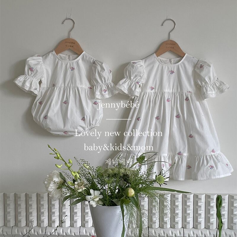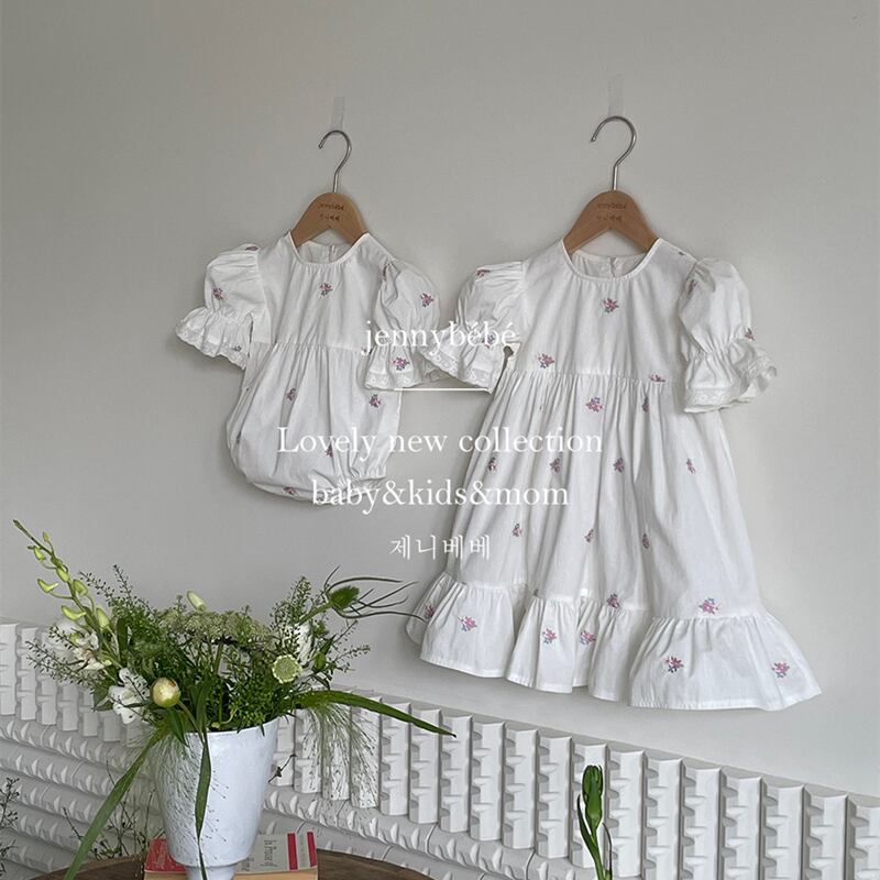 【海外からの取り寄せ】ins 夏新作 子供服 姉妹 お揃い 選べる2タイプ 刺繍 ロンパース ワンピース 半袖 パフスリーブ #[ckd1093701_30900]【送料込み】【250430】