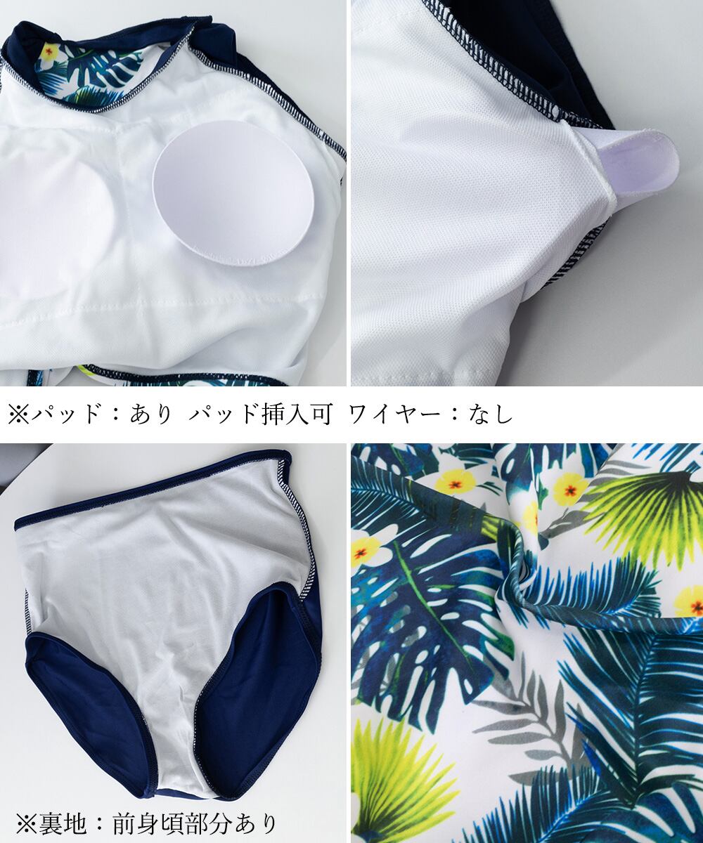 花柄長袖トップスとハイウエストデザインショーツの上下セット水着