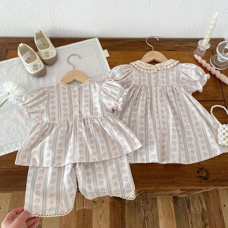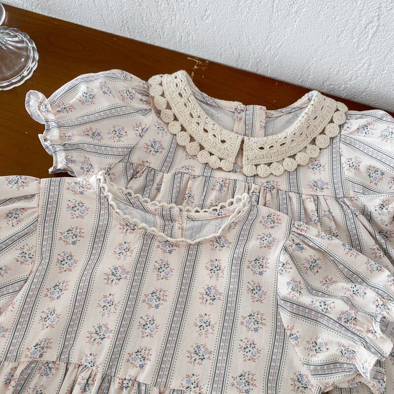 ins 韓国子供服 女の子 パフスリーブ シャツ ズボン 新生児 女児 普段着 森ガール 春 夏
