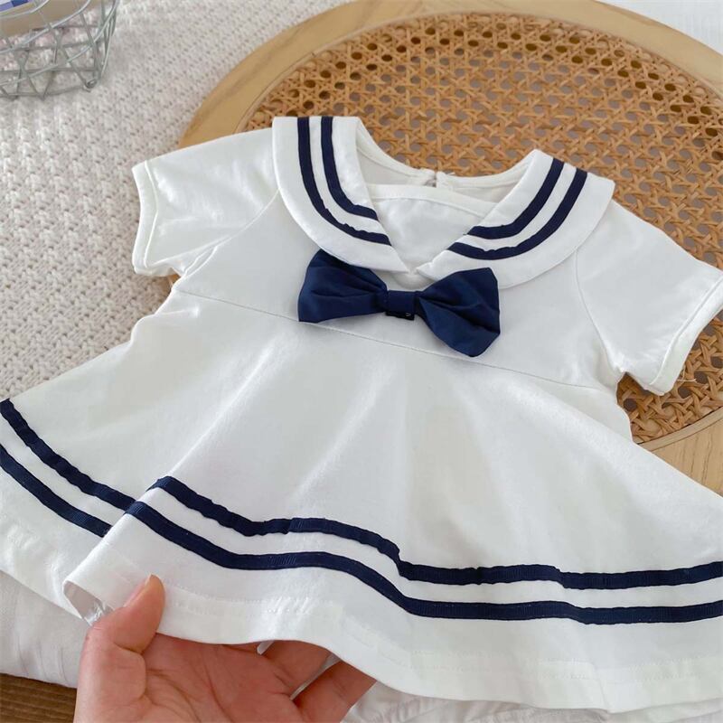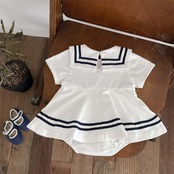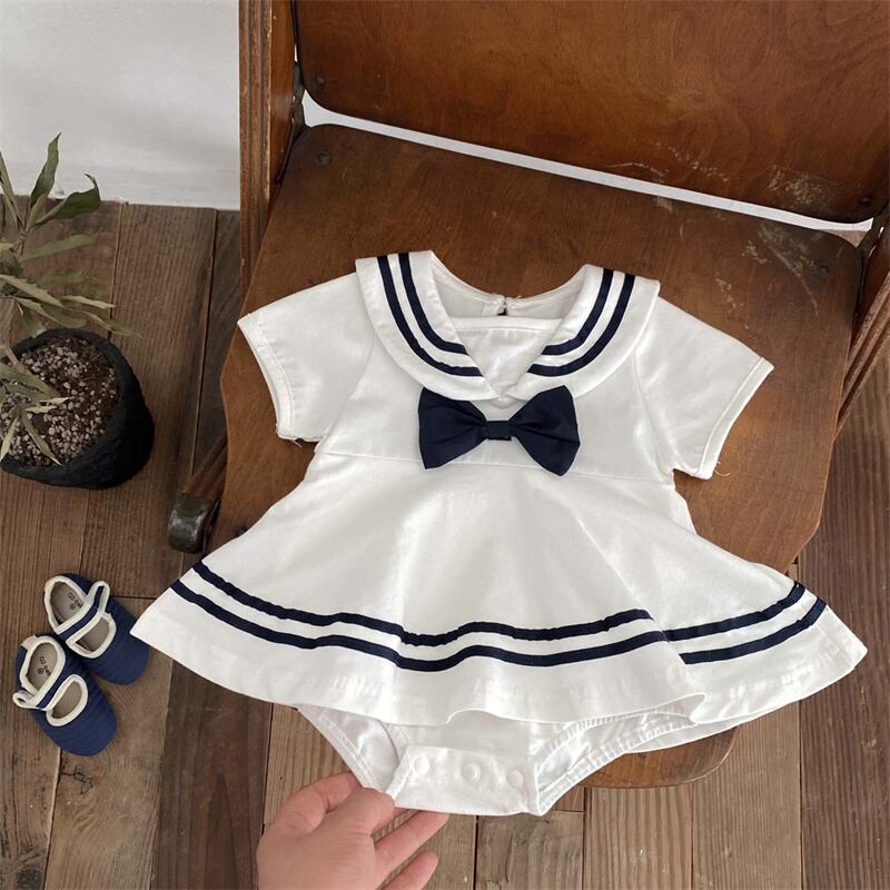 【海外からの取り寄せ】2024夏新作 ベビー服 女の子 セーラーカラー 半袖 ロンパース 可愛い リボン おしゃれ 子供服 #[ckd1093725_18300]【送料込み】【250508】