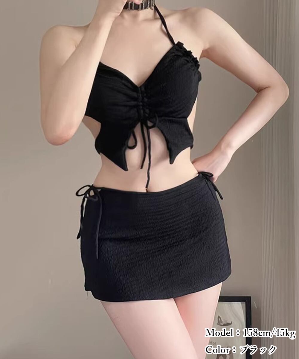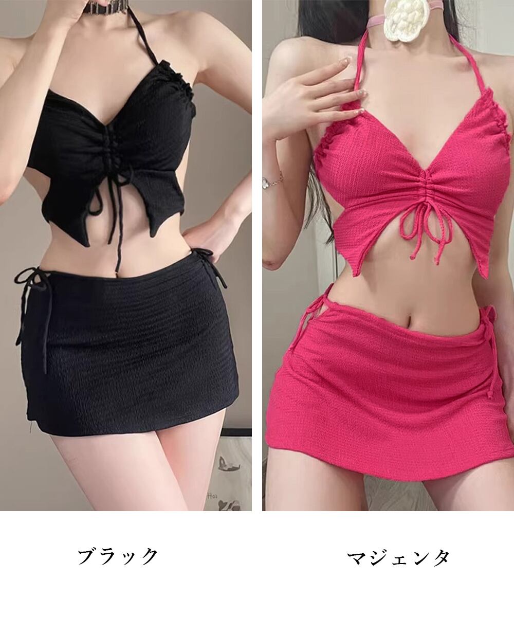 ビキニブラ×ショーツ×スカートを組み合わせたフェミニンな雰囲気の水着3点セット