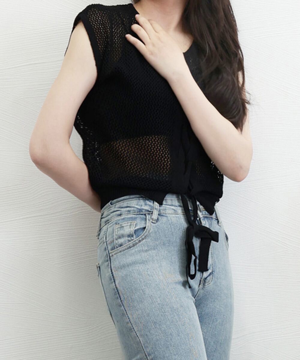 【日本倉庫からの発送】 透かし編みトップス サマーニット 重ね着 #[33DW-050_13500]【送料込み】【250712】