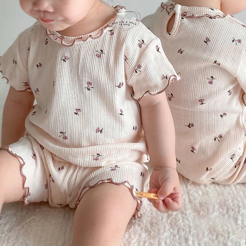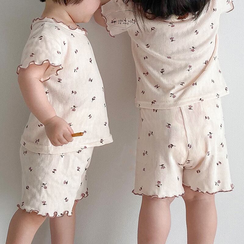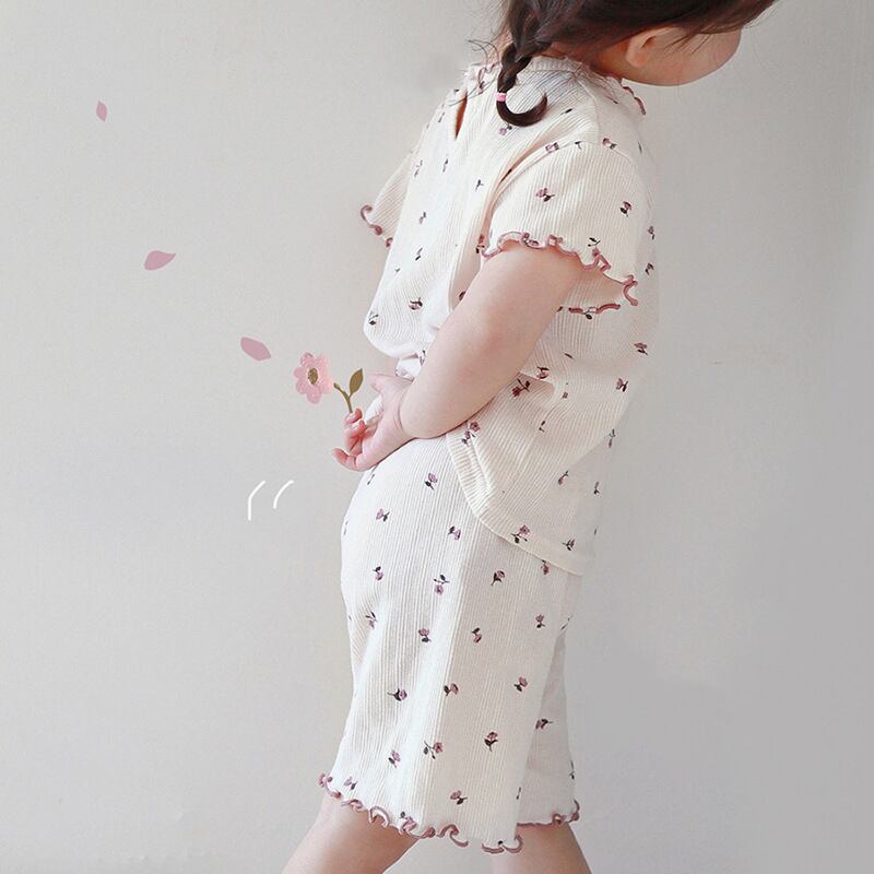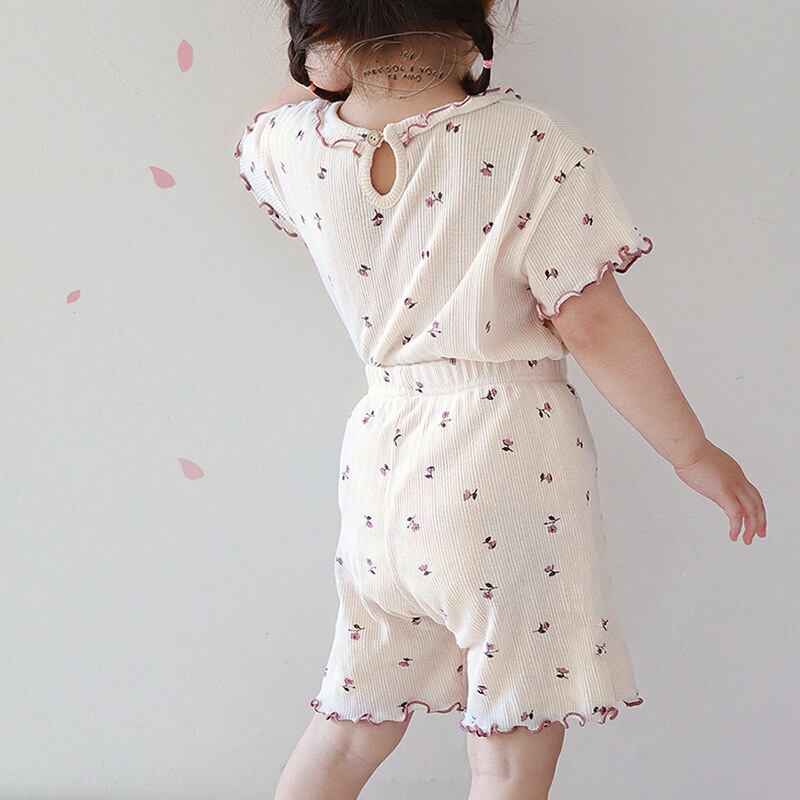 【海外からの取り寄せ】2024夏新作 子供服 部屋着 フリル セットアップ 半袖Tシャツ ハーフパンツ 花柄 可愛い 柔らかい #[ckd1093760_15200]【送料込み】【250508】