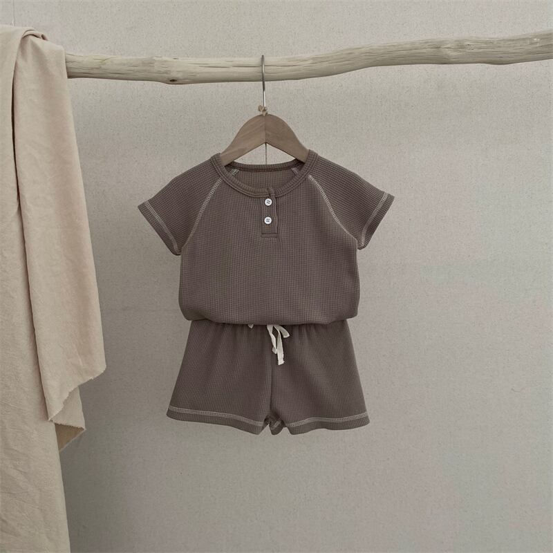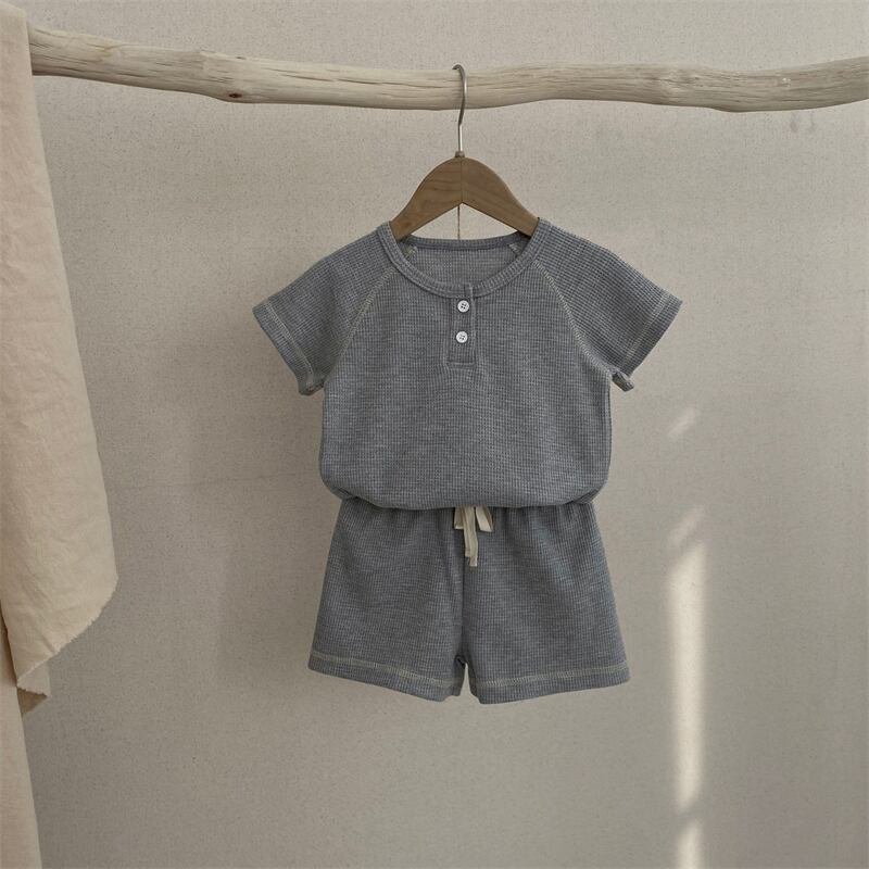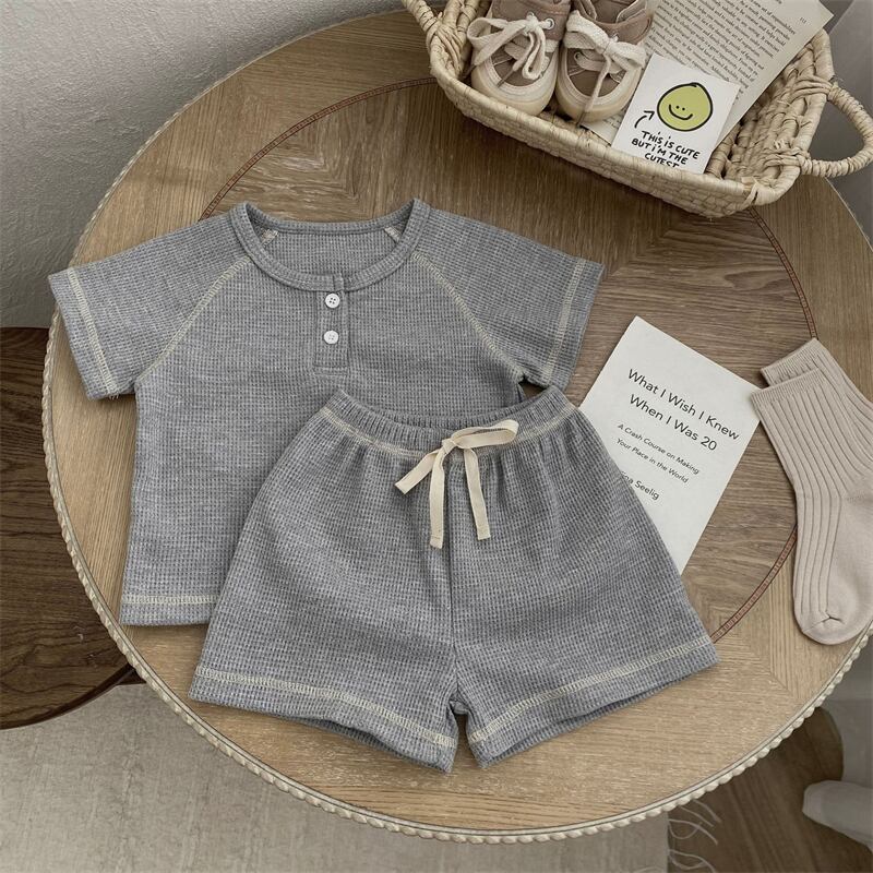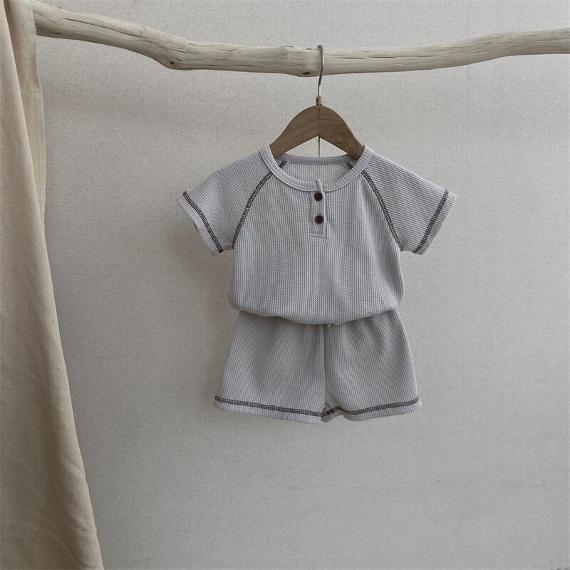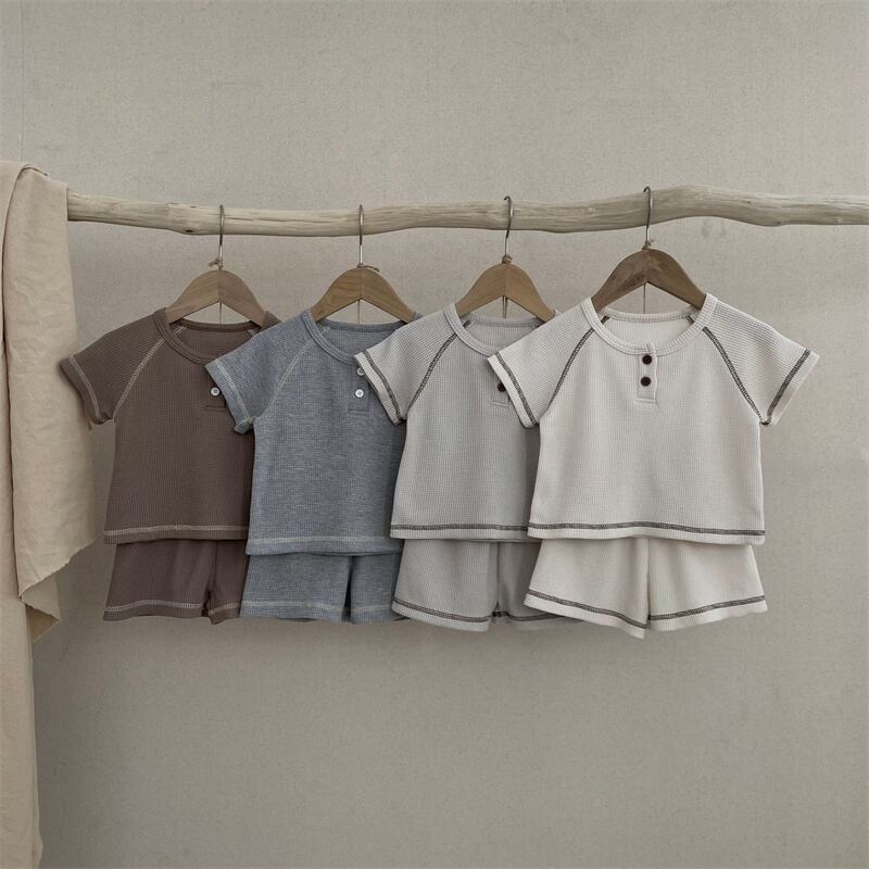 【海外からの取り寄せ】2024夏新作 赤ちゃん ワッフル セットアップ 半袖 Tシャツ ハーフパンツ 子供服 可愛い 柔らかい #[ckd1093759_16800]【送料込み】【250517】