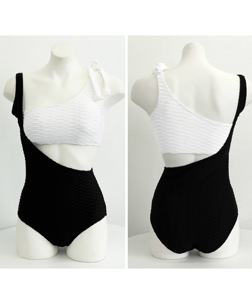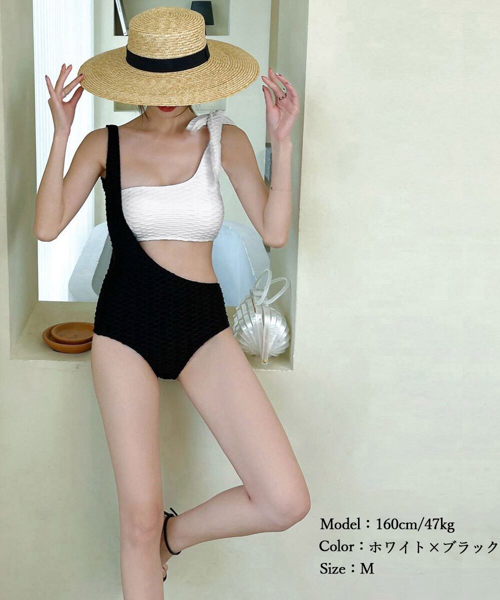 【日本倉庫からの発送】 モノトーンリボンショルダーワンピース水着 #[98JSTN-001_20300]【送料込み】【250915】