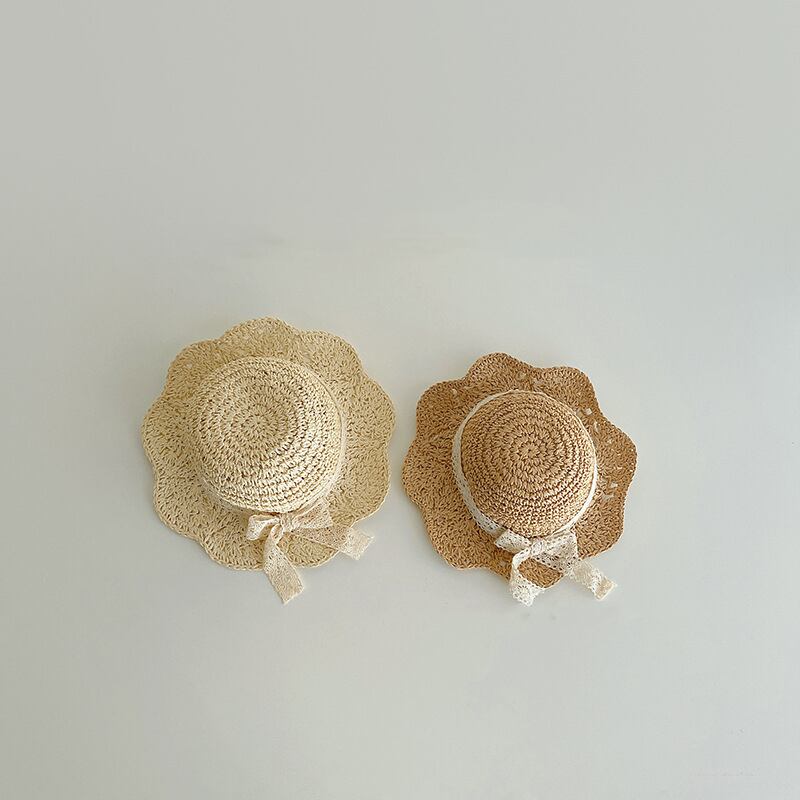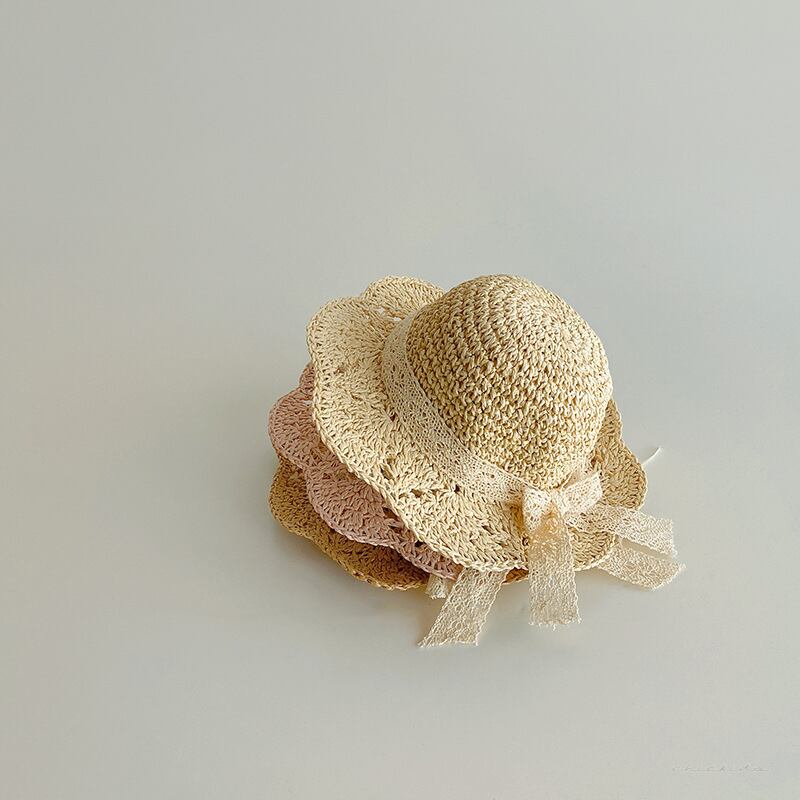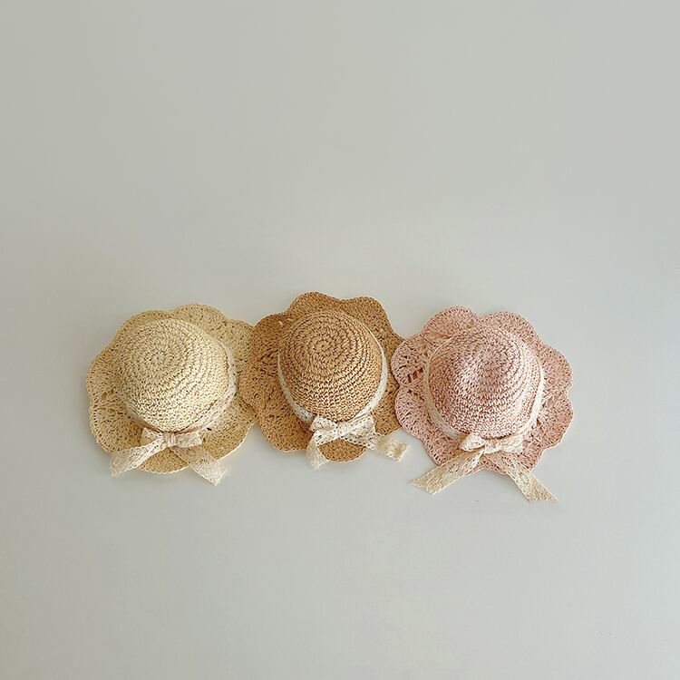【海外からの取り寄せ】ins 夏新作 ベビー帽子 キャペリン レースリボン 子供用 日よけ カンカン帽 日焼け防止 麦わら帽子 #[ckd1091710_9300]【送料込み】【250622】