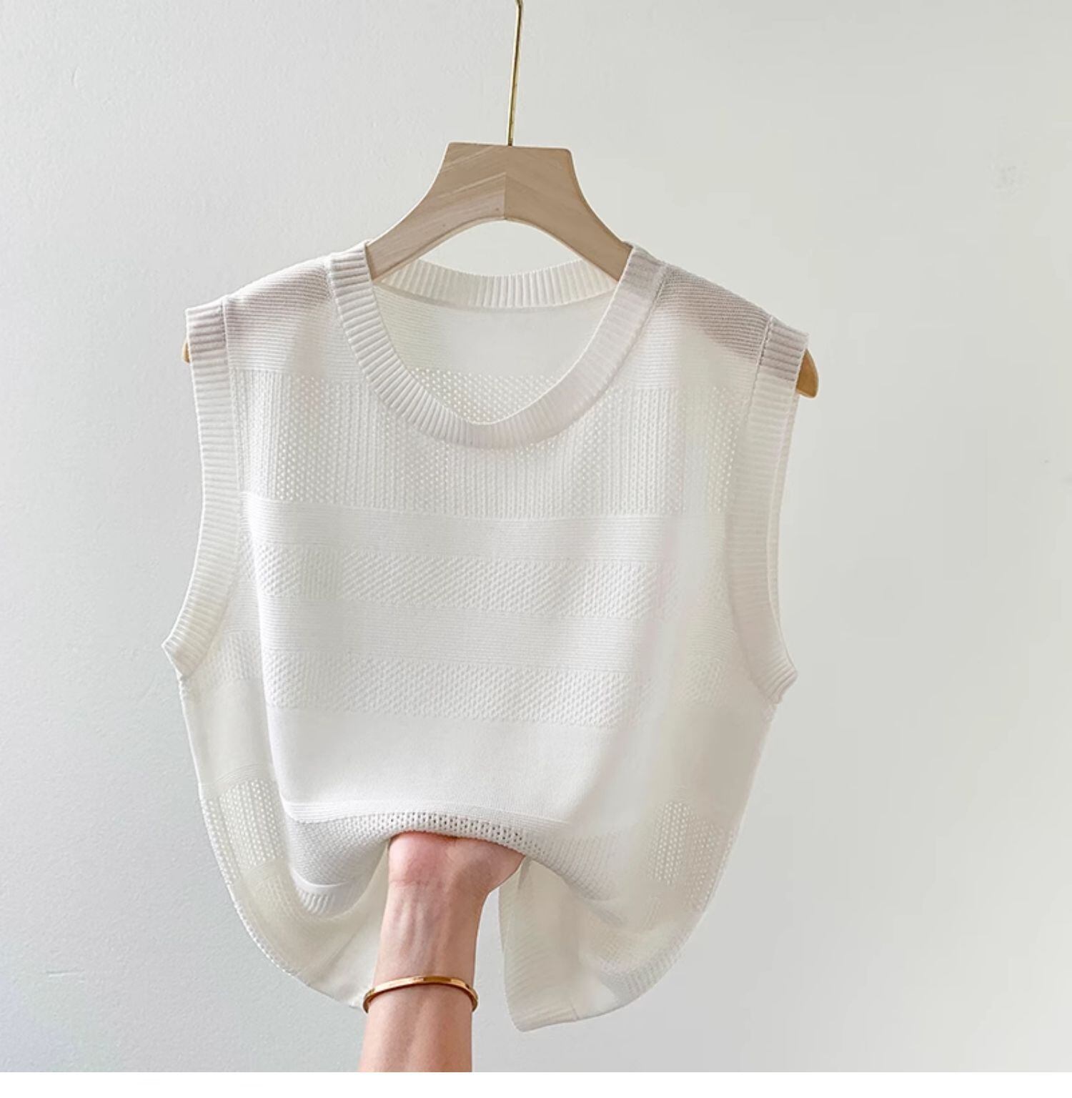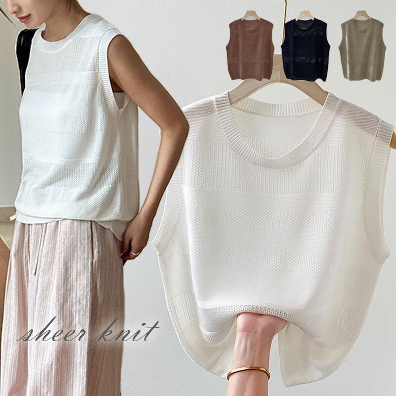 【海外からの取り寄せ】 シャツ シアートップス シアーニット 透け感 トレンド 大人 ノースリーブ 黒 サマーニット #[tops444_13800]【送料込み】【250712】