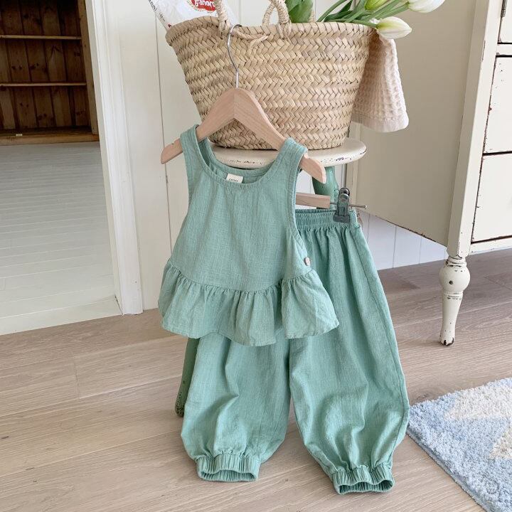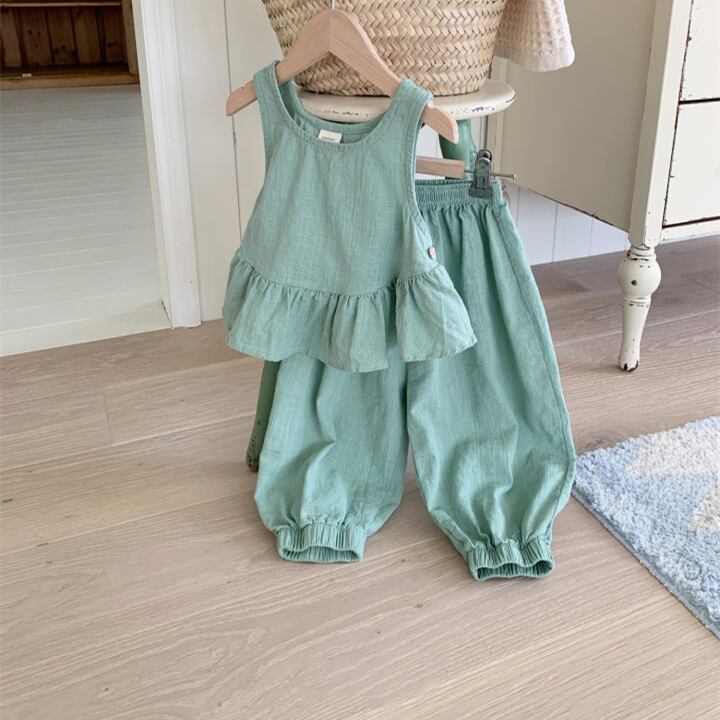 【海外からの取り寄せ】2024夏新作 子供服 女の子 フリル セットアップ ベスト ロングパンツ 涼しい 可愛い 柔らかい #[ckd1093740_19400]【送料込み】【250517】
