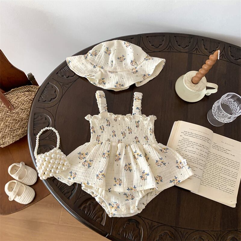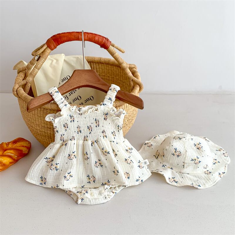 【海外からの取り寄せ】2024夏新作 ベビー服 女の子 キャミソール ロンパース 可愛い 帽子付き 花柄 おしゃれ 子供服 #[ckd1093785_18100]【送料込み】【250517】
