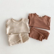 【海外からの取り寄せ】2024秋新作 子供服 ストライプ柄 部屋着 セットアップ 長袖 Tシャツ ロングパンツ 柔らかい #[ckd1093800_20200]【送料込み】【250517】