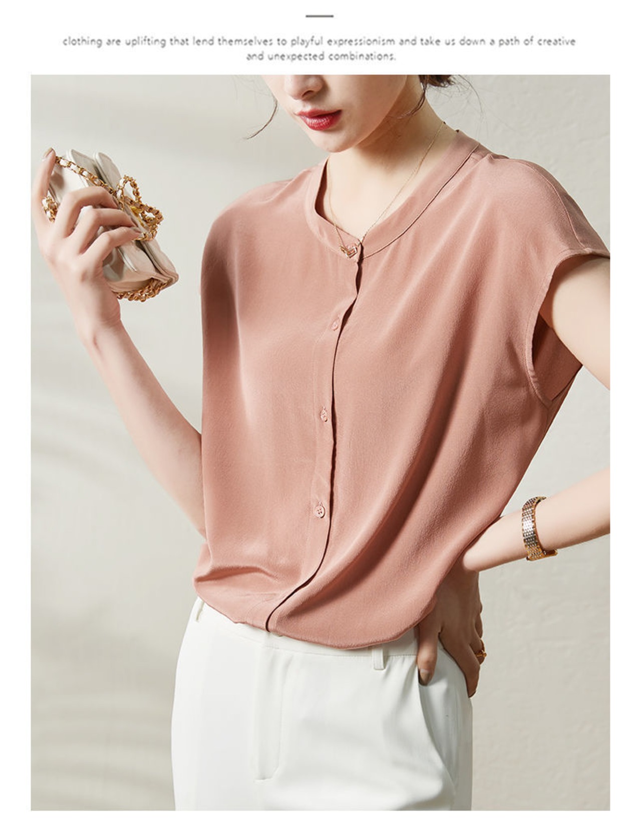 【海外からの取り寄せ】 2024新作 レディース ノーカラーシャツ ブラウス シフォン きれいめ トップス ソフト #[shirt425_14800]【送料込み】【250712】
