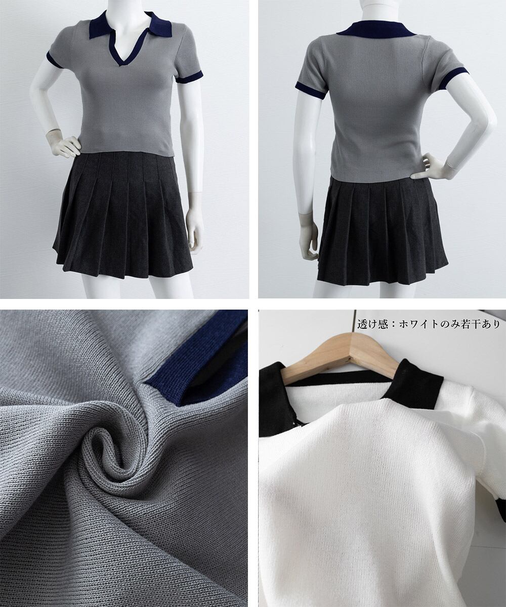 【日本倉庫からの発送】 サマーニット夏Vネック半袖ニットトップス #[89DWEI-007_13500]【送料込み】【250712】