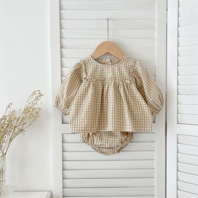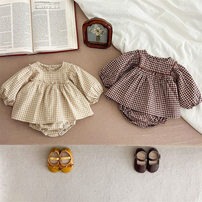 【海外からの取り寄せ】2024秋新作 ベビー服 女の子 格子 セットアップ 長袖 ブラウス ショートパンツ 子供服 可愛い #[ckd1093850_19100]【送料込み】【250517】