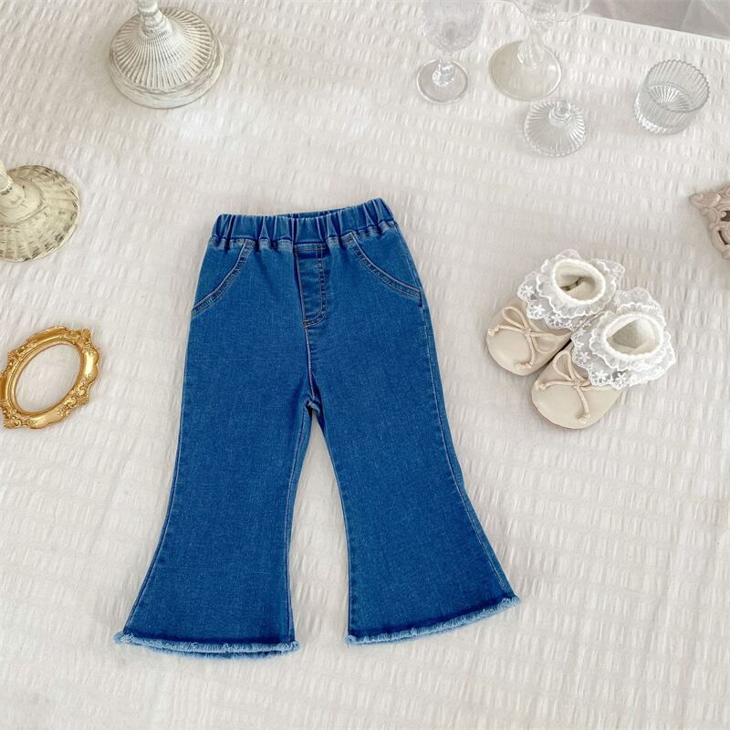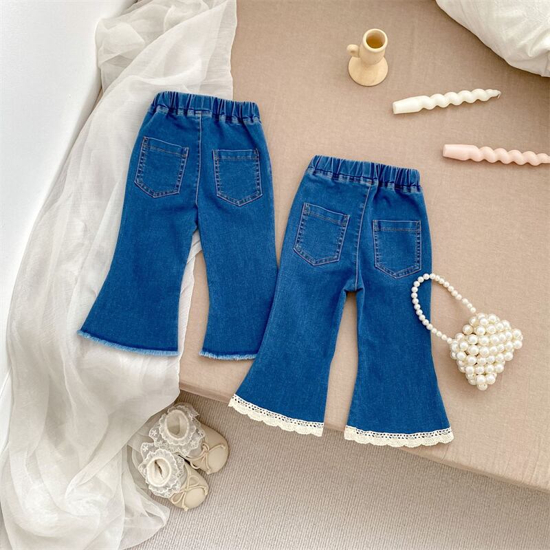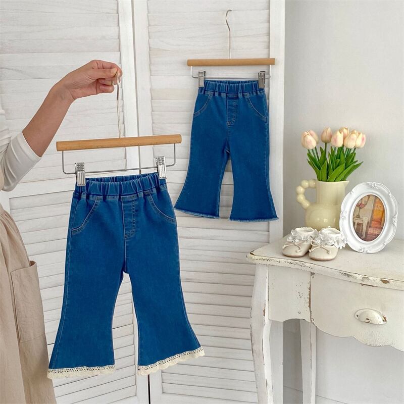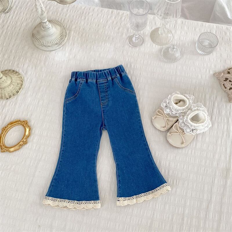 【海外からの取り寄せ】ins 秋新作 子供服 女児 パンタロン デニム ラッパズボン カジュアル ボトムス レース ベルボトム #[ckd1093883_16500]【送料込み】【250704】