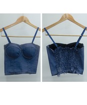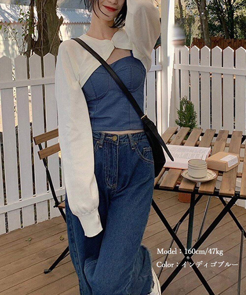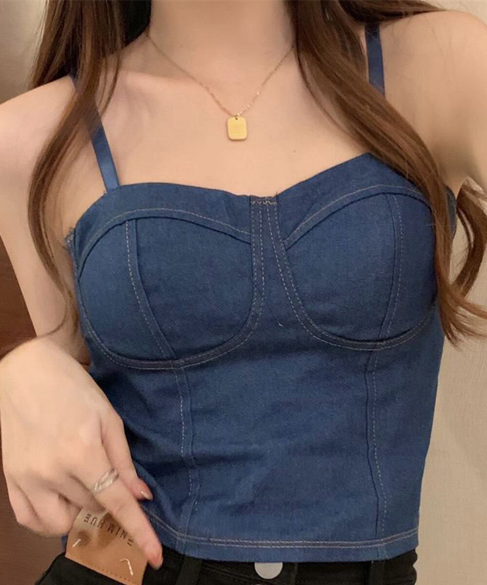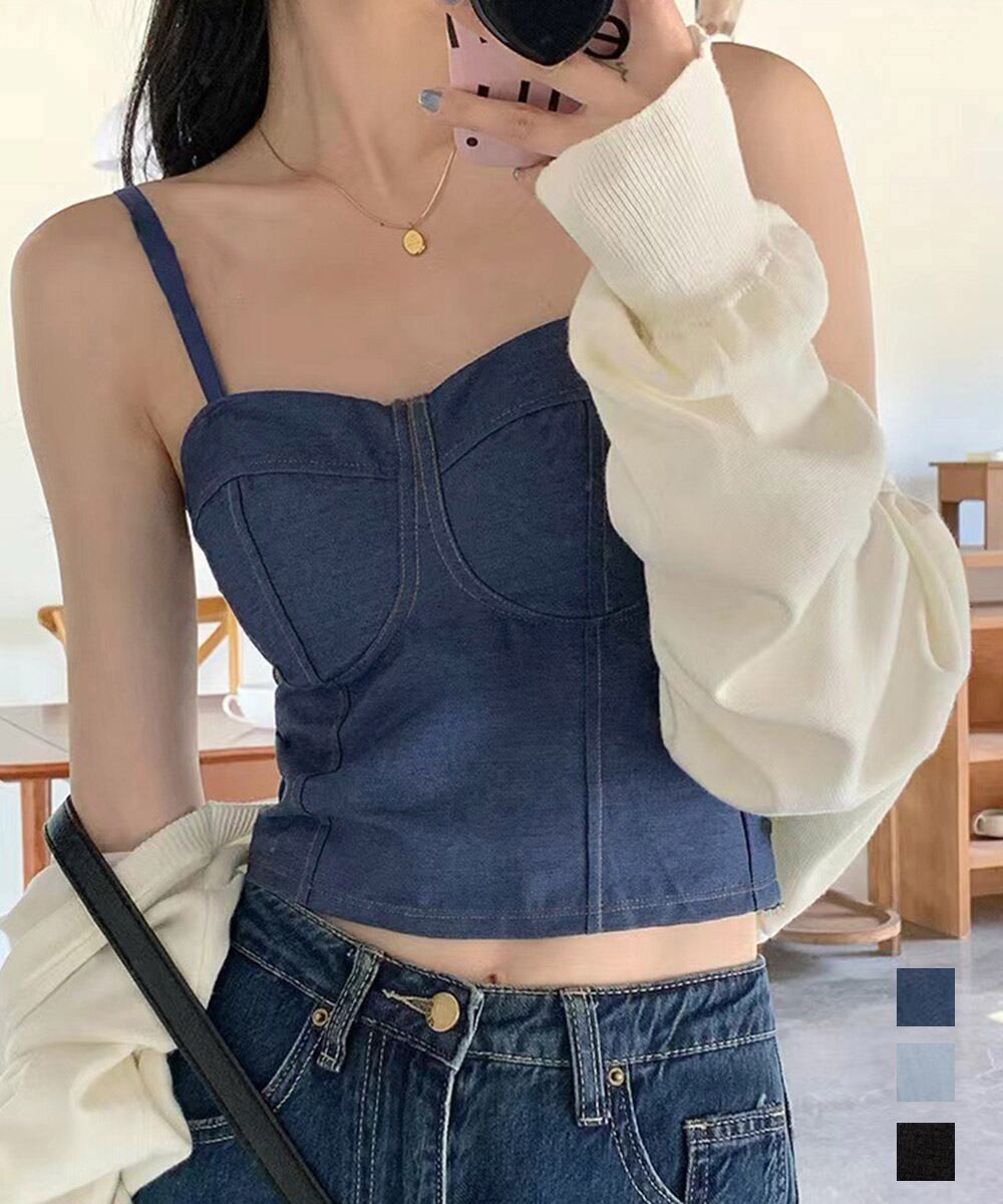 レディース デニム 3色 インナーキャミソール ビスチェ カップ付き ノースリーブ キャミ クロップド トップス