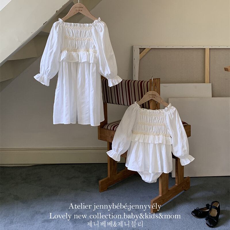 【海外からの取り寄せ】2024秋新作 子供服 姉妹 お揃い 選べる2タイプ ロンパース ワンピース ホワイト 可愛い おしゃれ #[ckd1093941_24900]【送料込み】【250514】