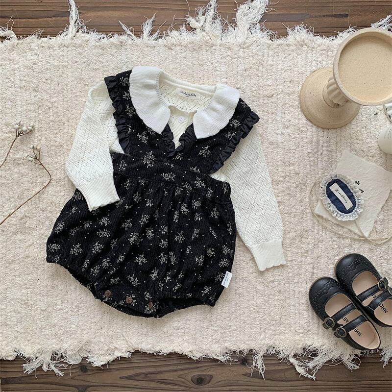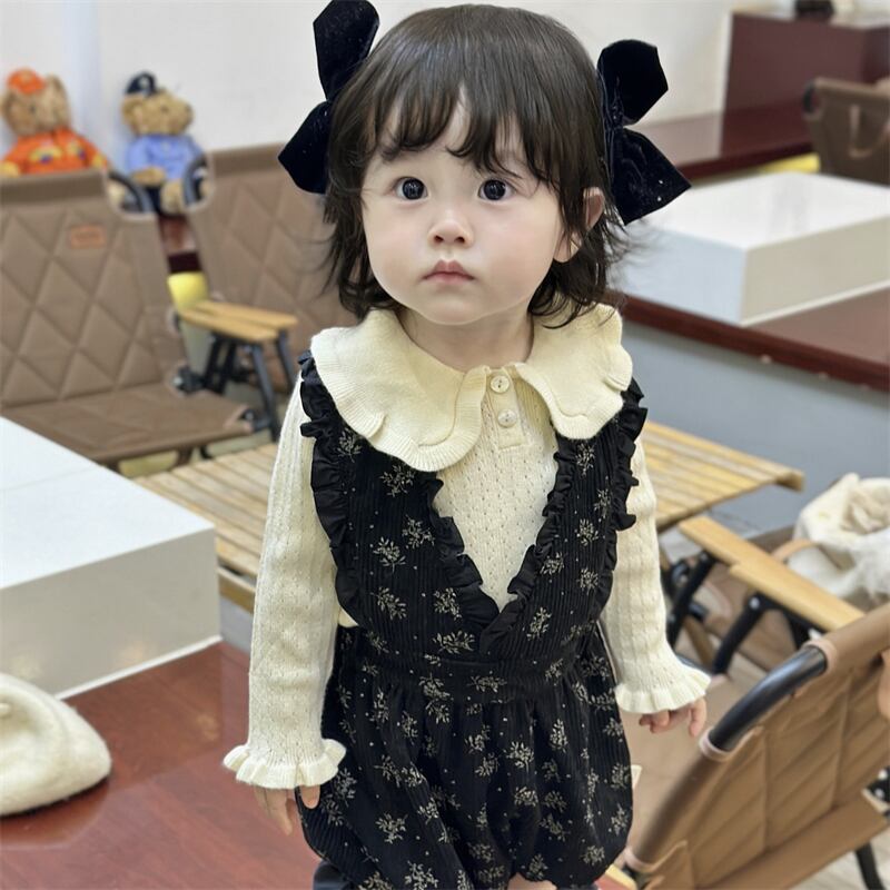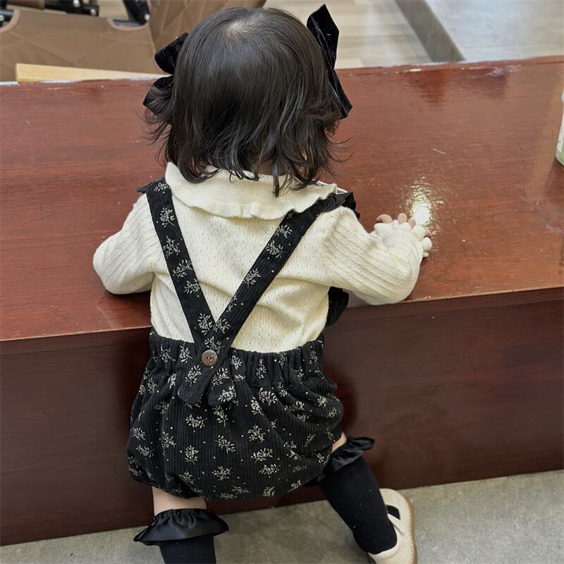 【海外からの取り寄せ】2024秋新作 女の子 コーデュロイ 花柄 ロンパース 子供服 フラッタースリーブ サロペット 可愛い #[ckd1093936_23400]【送料込み】【250422】
