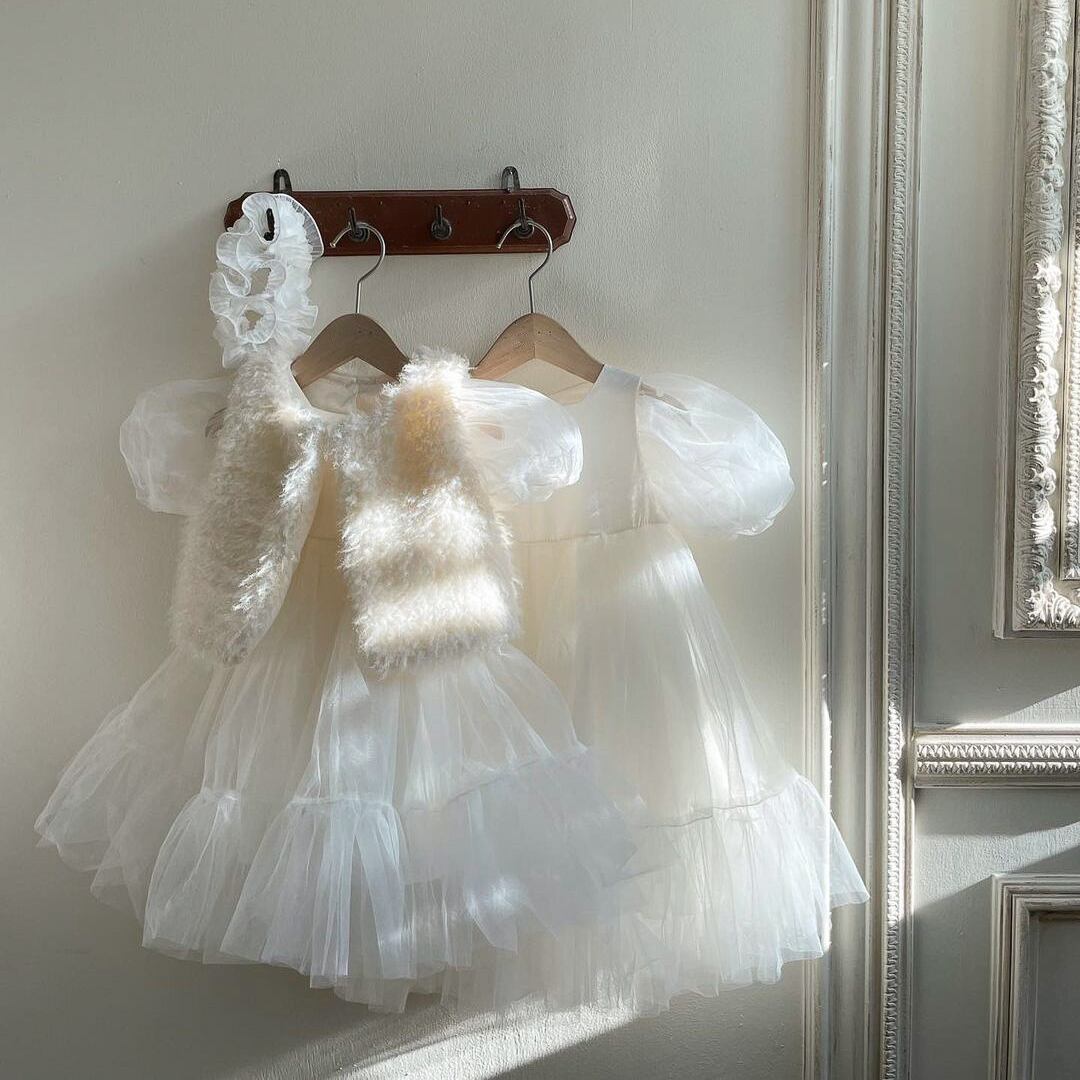 【海外からの取り寄せ】ins 夏新作 女の子 子供服 チュール ワンピース 森ガール 可愛い 半袖 パフスリーブ おしゃれ #[ckd1093932_21900]【送料込み】【250512】