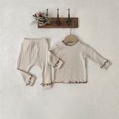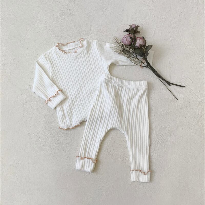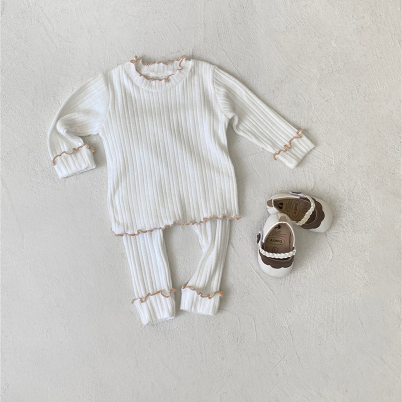 【海外からの取り寄せ】2024秋新作 ベビー服 リブ フリル セットアップ Tシャツ レギンス 子供服 可愛い パジャマ 女児 #[ckd1093958_18600]【送料込み】【250515】