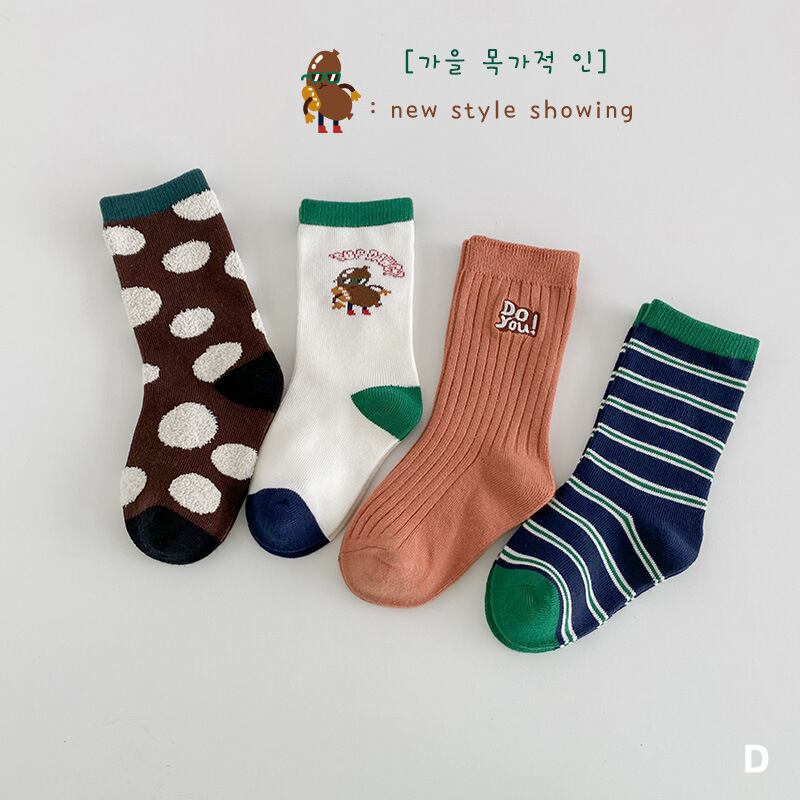 【海外からの取り寄せ】ins 秋新作 韓国風 子供靴下 ソックス 幼児 靴下 4足組 動物柄 英字 可愛い おしゃれ 3〜12歳 #[ckd1093943_11100]【送料込み】【251111】