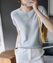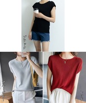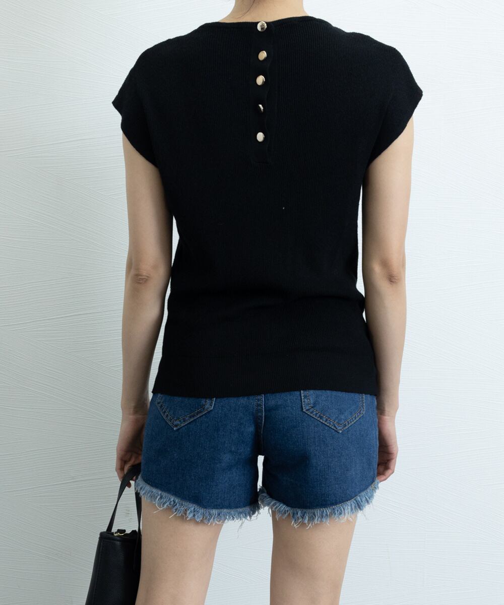 【日本倉庫からの発送】 フレンチスリーブサマーニットバックボタン #[24TPS-011_21500]【送料込み】【250712】