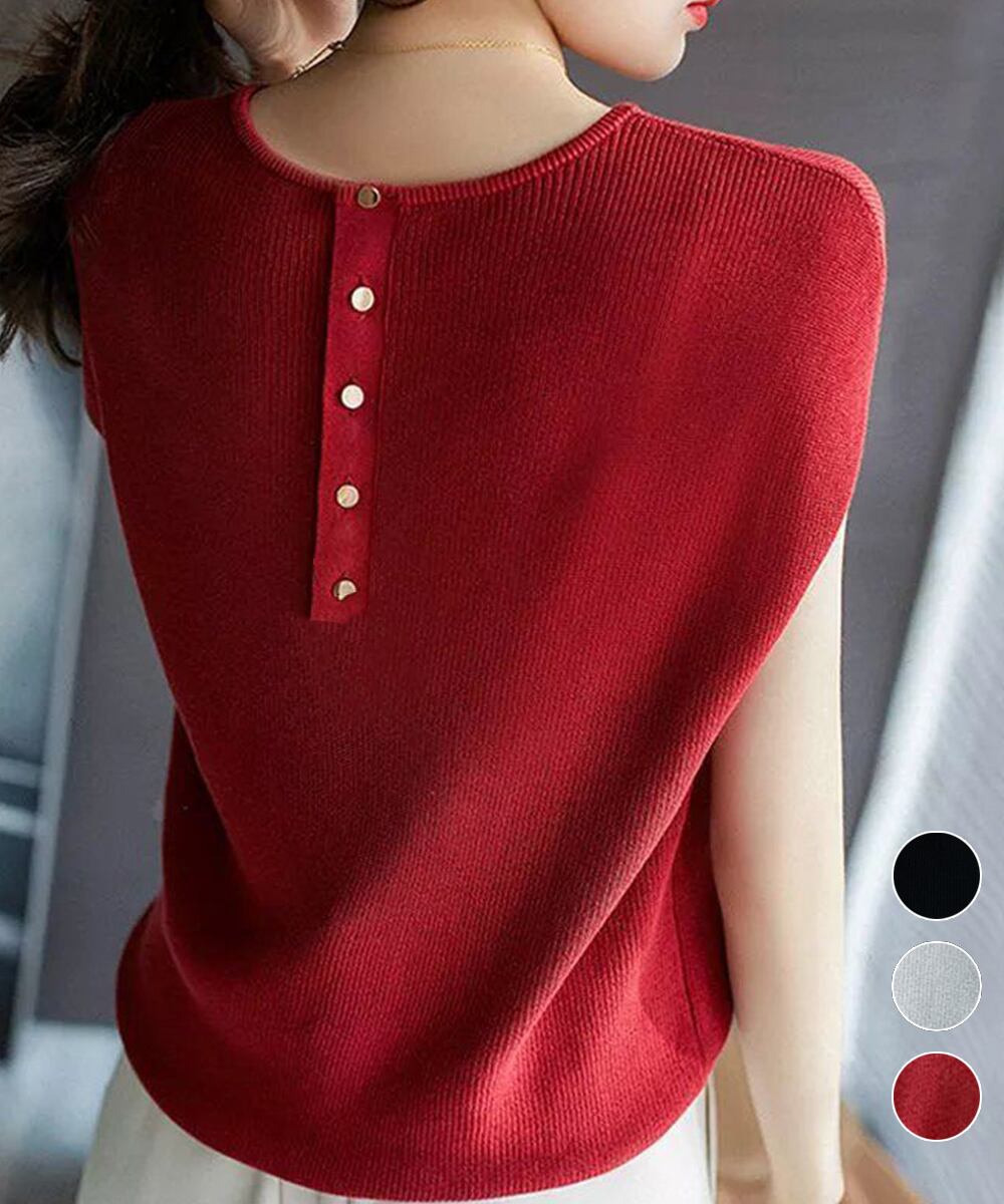 バックボタンがクラシカルな印象を与えてくれるサマーニット