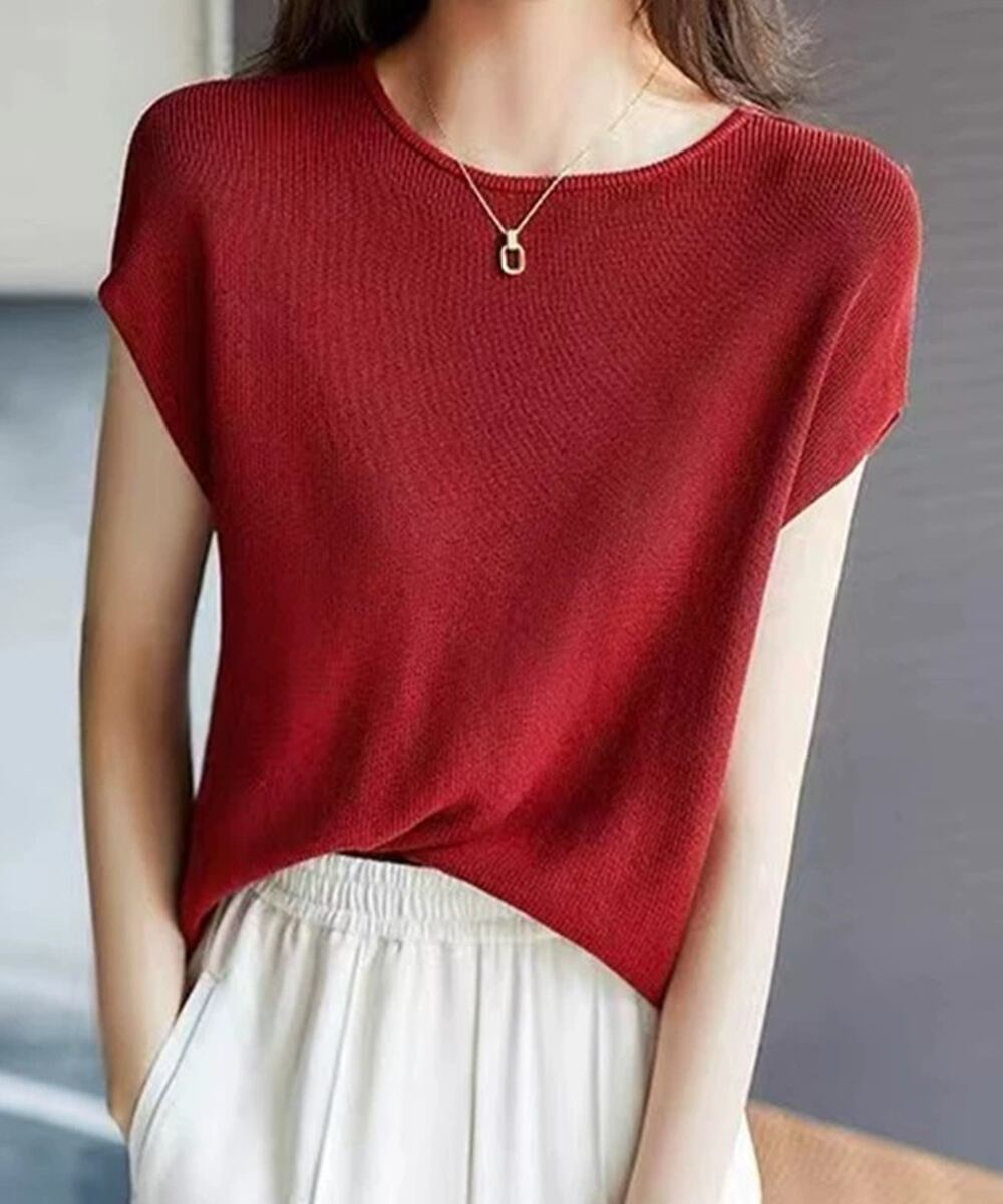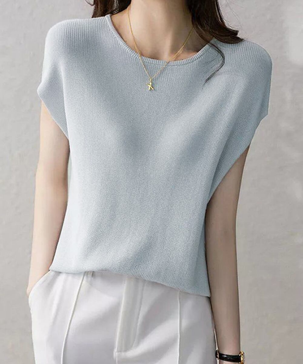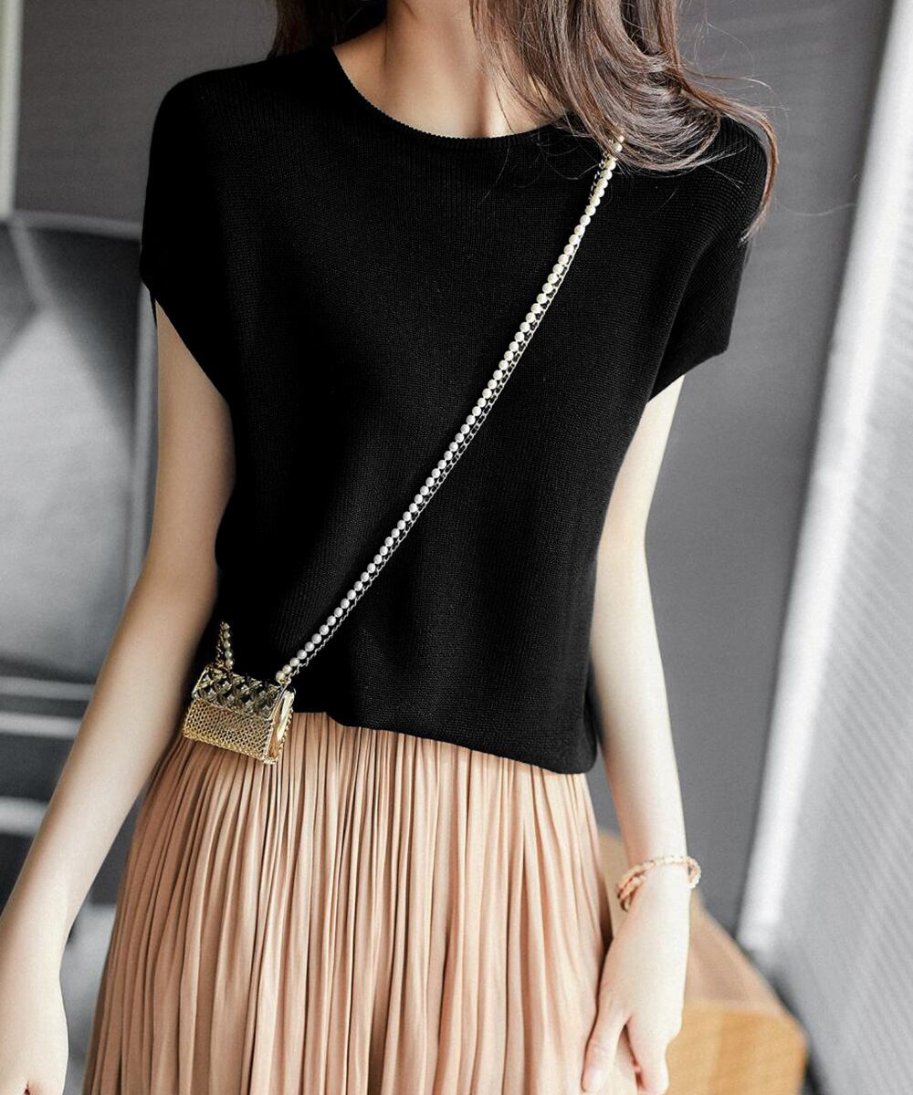 きれいめニットソー 夏トップス 着やせ 30代40代通勤服
