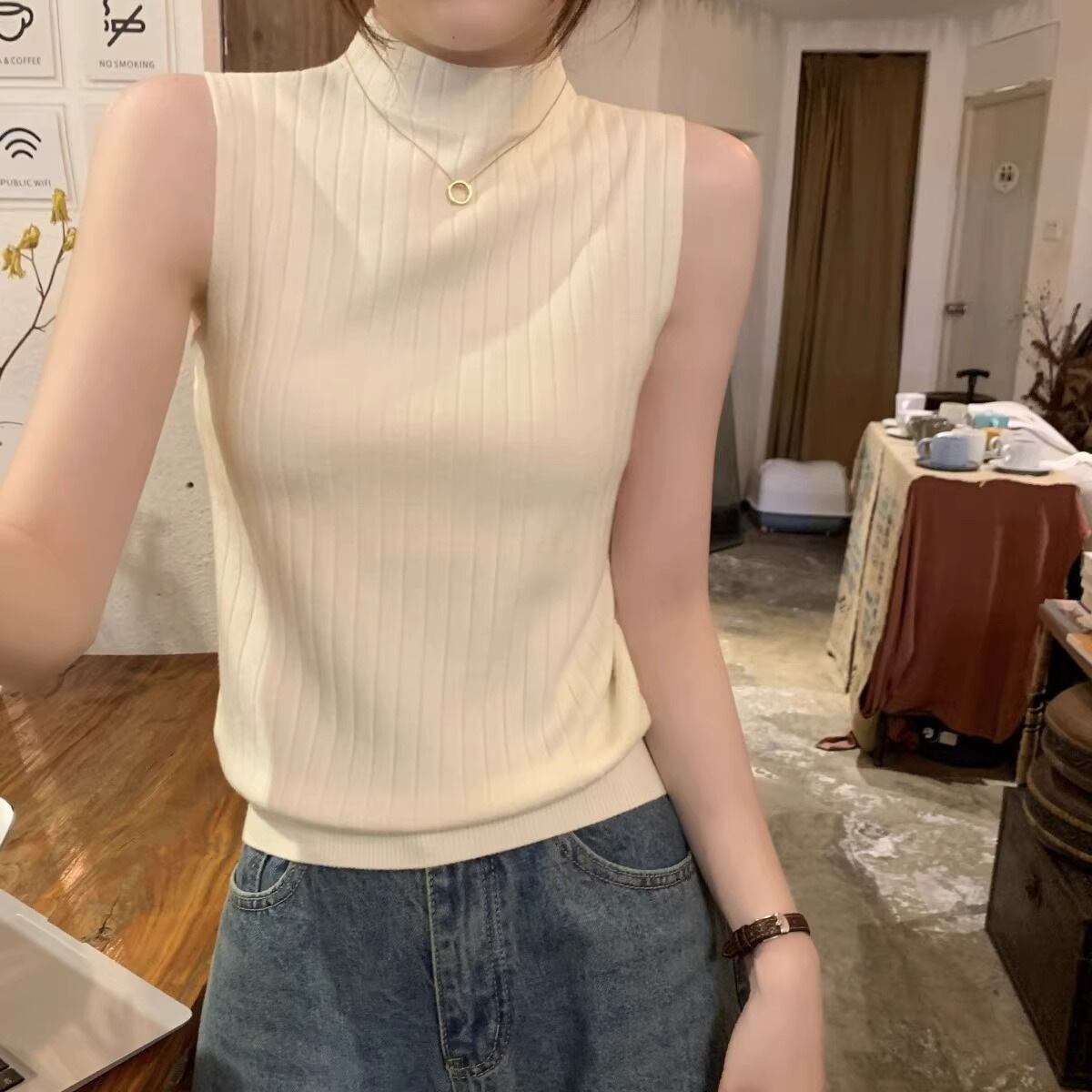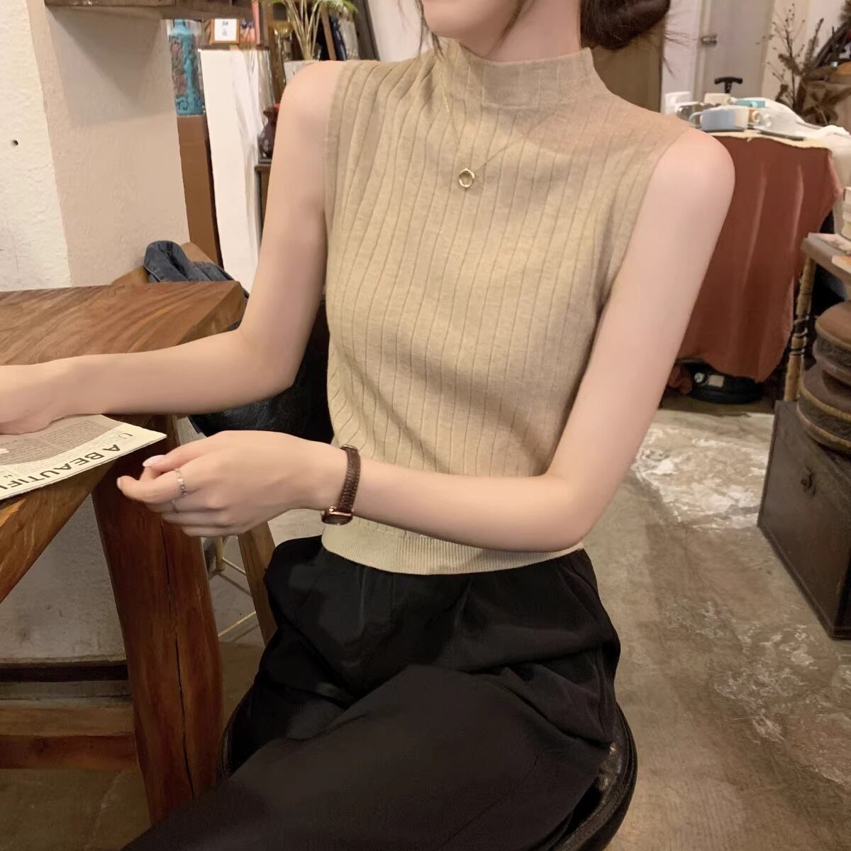 【海外からの取り寄せ】 2024新作 レディース セーター ニット ノースリーブ ハイネック オフィス キレイめ 薄手 #[tops459_7800]【送料込み】【250915】