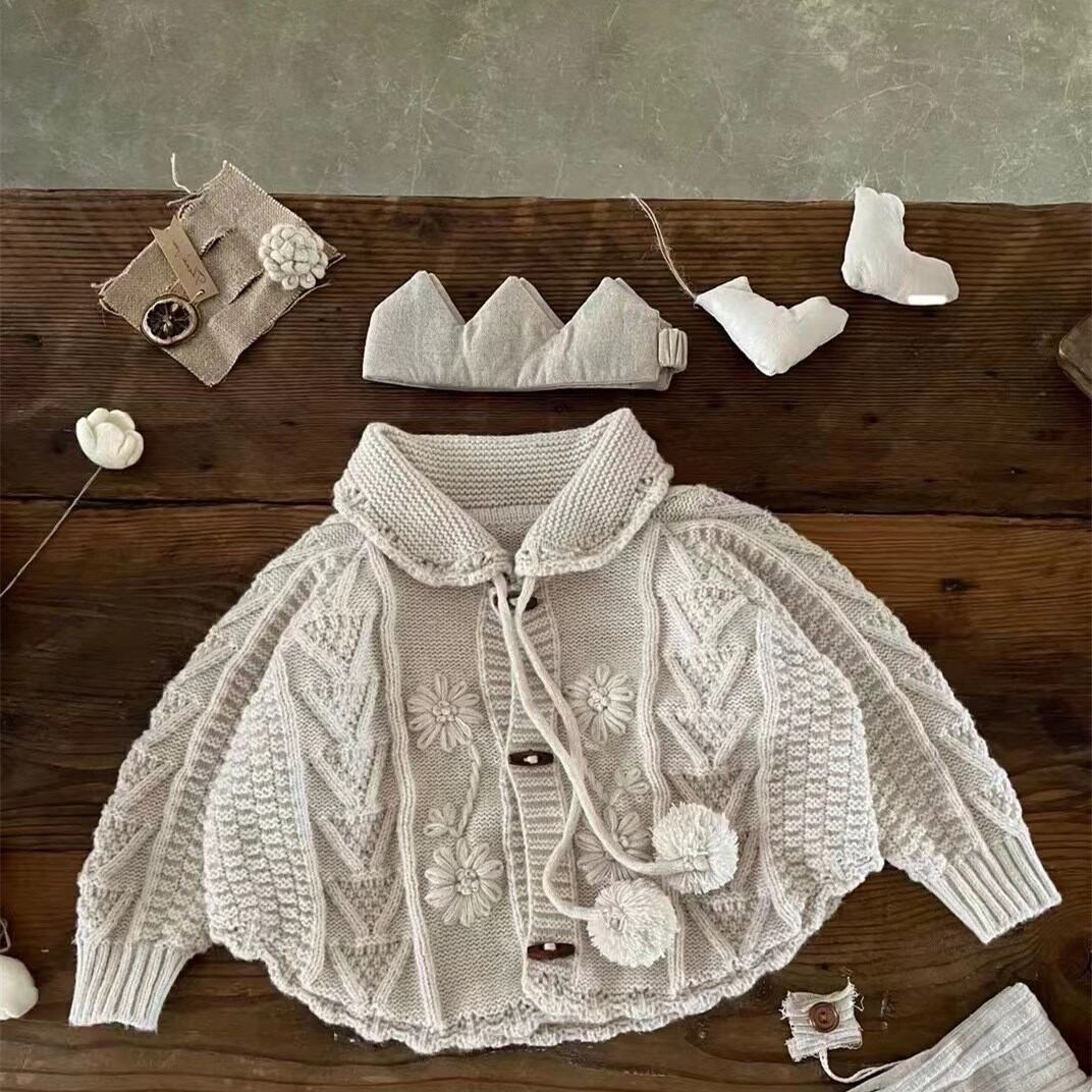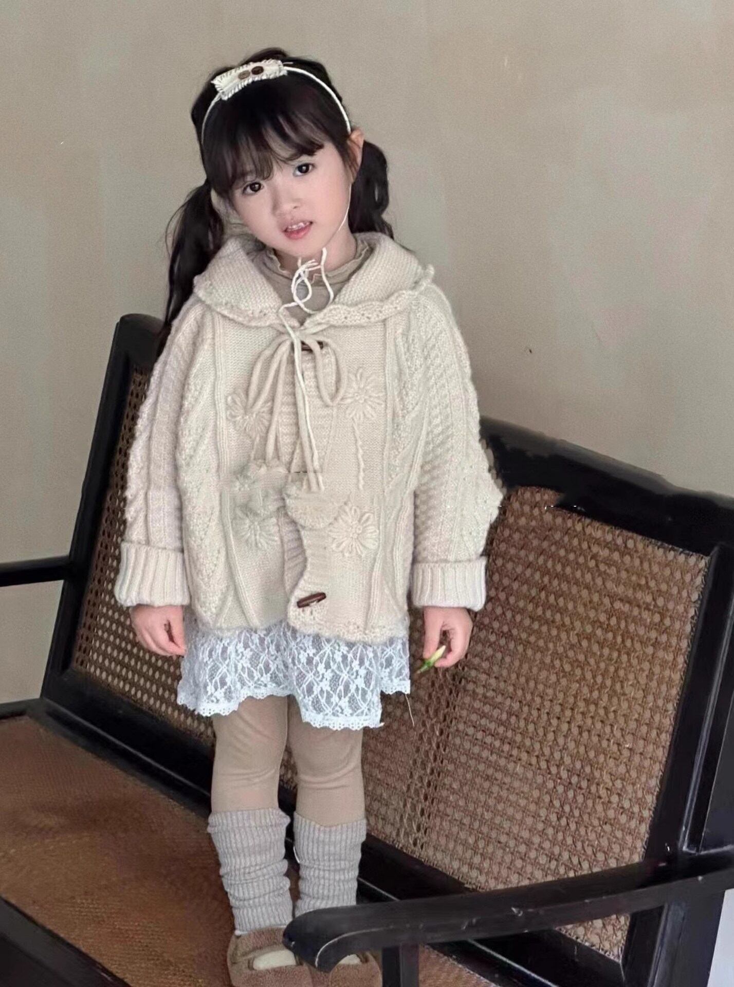 【海外からの取り寄せ】 2024新作 韓国子供服 キッズ ニットトップス カーディガン セーター 襟付き オフホワイト #[kids767_27800]【送料込み】【250326】