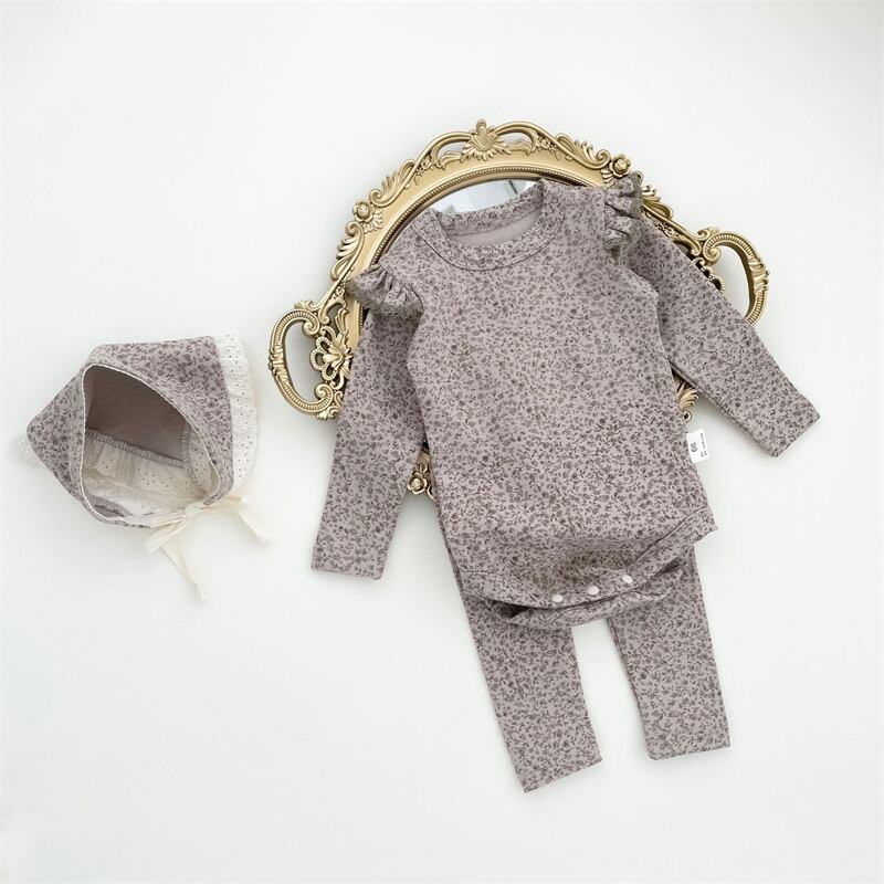 【海外からの取り寄せ】2024秋新作 ベビー服 女の子 セットアップ ボンネット Tシャツ ロングパンツ 花柄 部屋着 可愛い #[ckd1094001_22900]【送料込み】【250517】