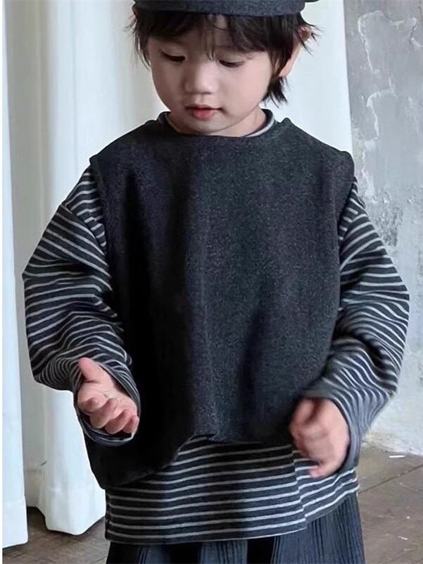 ・ベスト、ストライプ柄長袖トップス、パンツの3点セットです。 ・前後変えても着られる2way仕様。