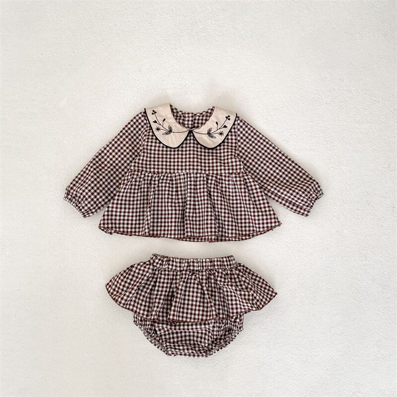 【海外からの取り寄せ】2024秋新作 子供服 女の子 格子 セットアップ 長袖 ブラウス ブルマー 可愛い おしゃれ 4色 #[ckd1094031_20700]【送料込み】【250515】