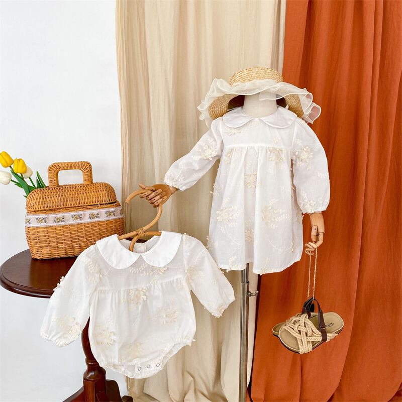 【海外からの取り寄せ】2024秋新作 子供服 姉妹 お揃い 選べる2タイプ ピーターパン襟 刺繍 長袖 ロンパース ワンピース #[ckd1094028_20200]【送料込み】【250511】