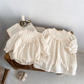 【海外からの取り寄せ】2024秋新作 子供服 姉妹 お揃い 選べる2タイプ レース 立ち襟 刺繍 長袖 ロンパース ワンピース #[ckd1094027_23500]【送料込み】【250430】