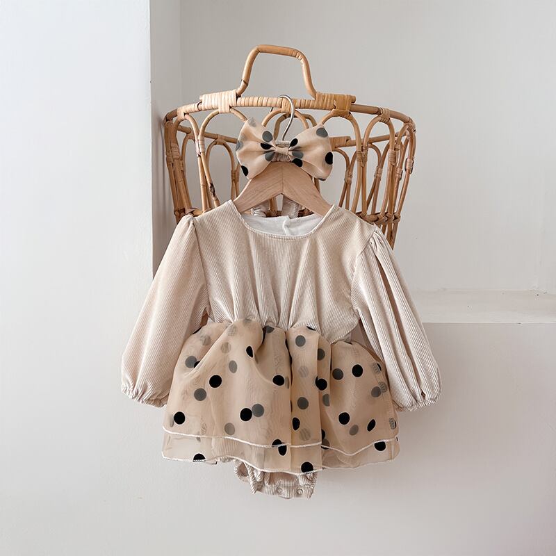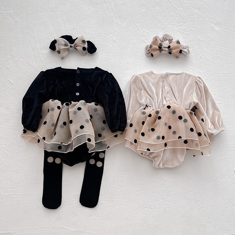 【海外からの取り寄せ】ins 秋新作 ベビー服 女の子 コーデュロイ×オーガンザ 切り替え ロンパース 水玉 可愛い 子供服 #[ckd1094076_21800]【送料込み】【250511】