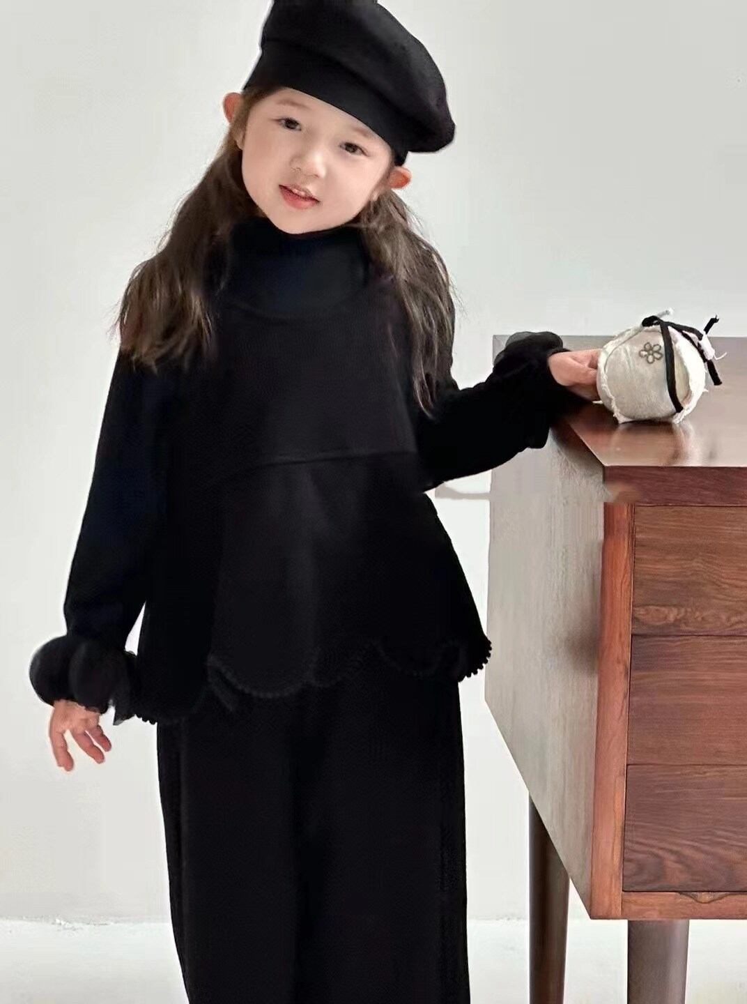 【海外からの取り寄せ】 2024新作 韓国子供服 上下セット2点セットトップス ロングパンツ 黒 ブラック 上品 #[kids773_31800]【送料込み】【250326】