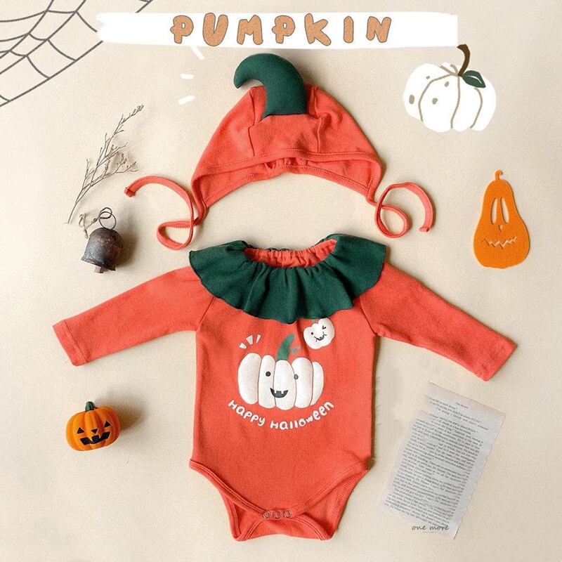 【海外からの取り寄せ】ins ベビー ハロウィン 帽子付き コスプレ 仮装 かぼちゃ プリント 可愛い ロンパース 子供服 #[ckd1094124_17000]【送料込み】【250923】