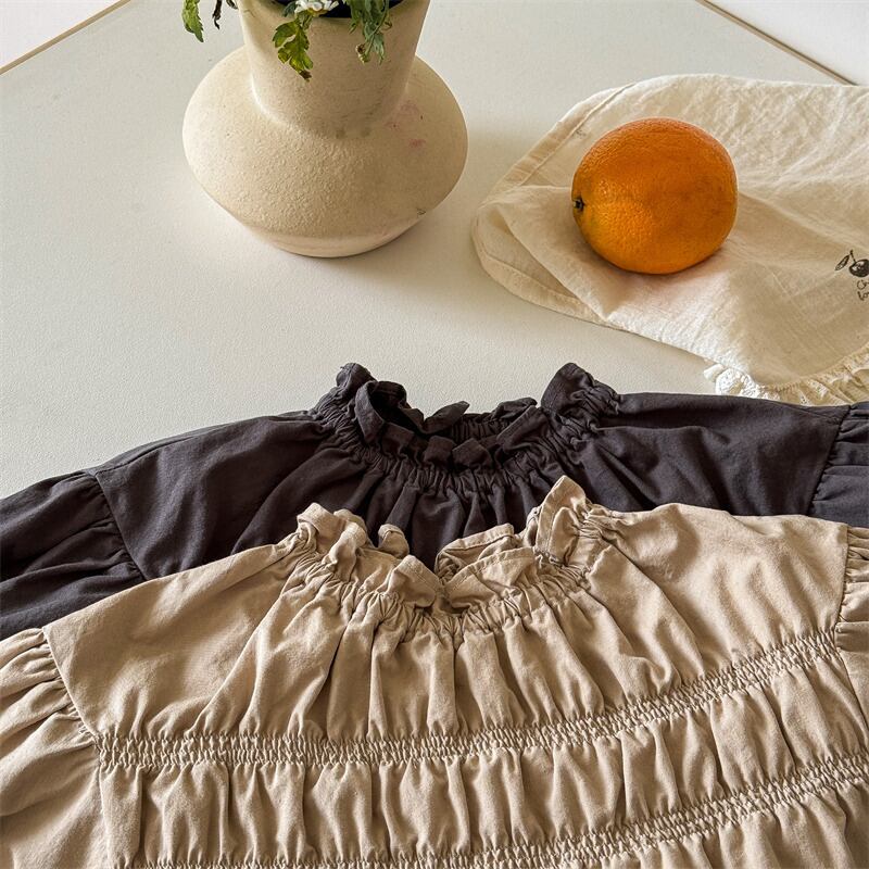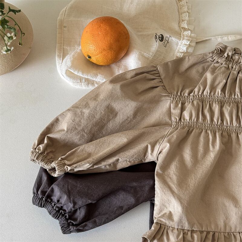 【海外からの取り寄せ】ins 秋新作 子供服 女の子 フリル 立ち襟 長袖 ブラウス 無地 トップス 可愛い おしゃれ シャツ #[ckd1094121_19000]【送料込み】【250704】